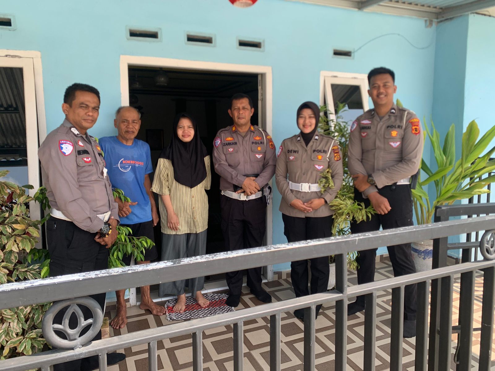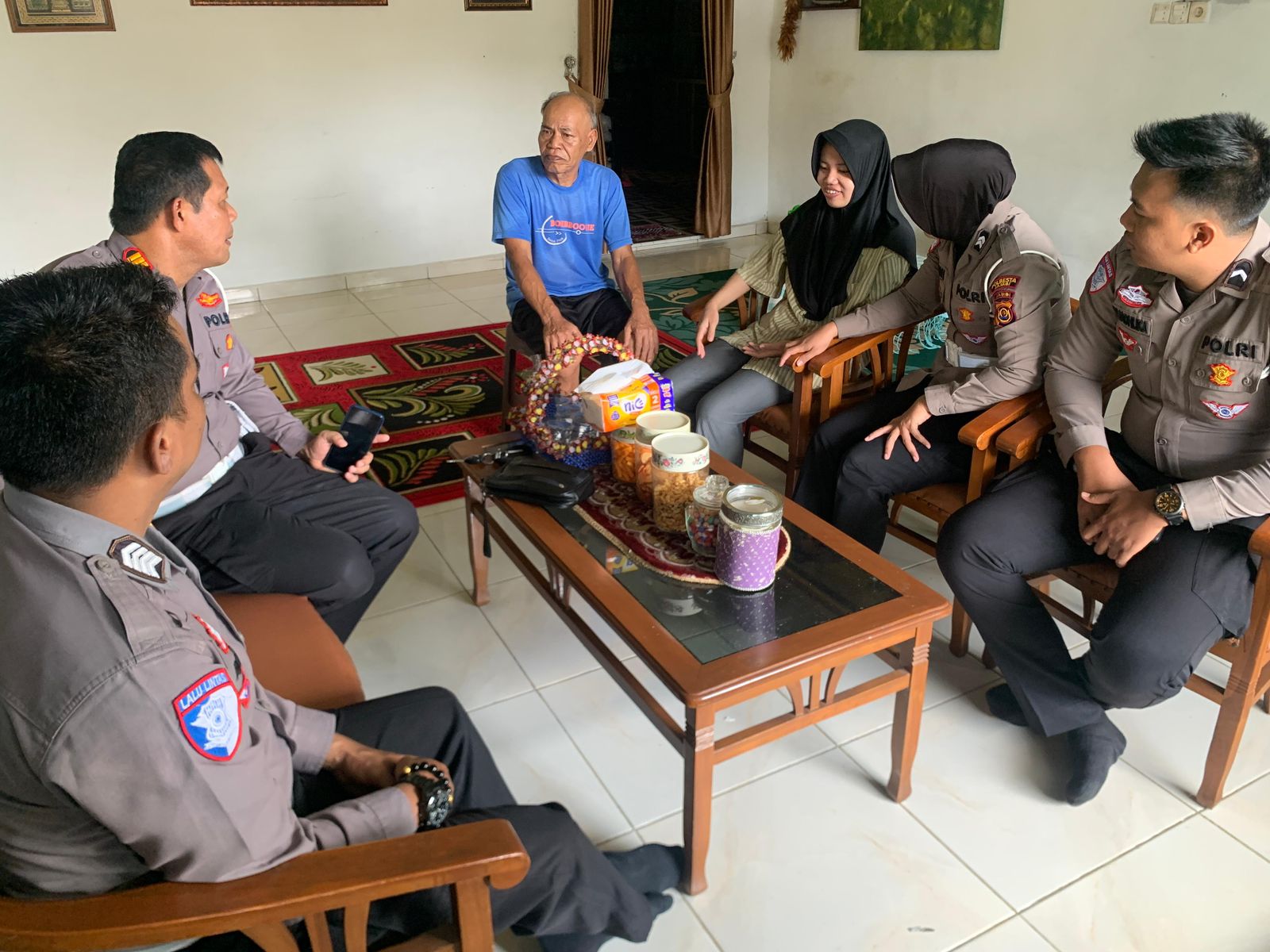 Lima personel Sat Lantas hadir untuk memberikan dukungan langsung, serta berbagi dengan penuh kehangatan dan kepedulian.