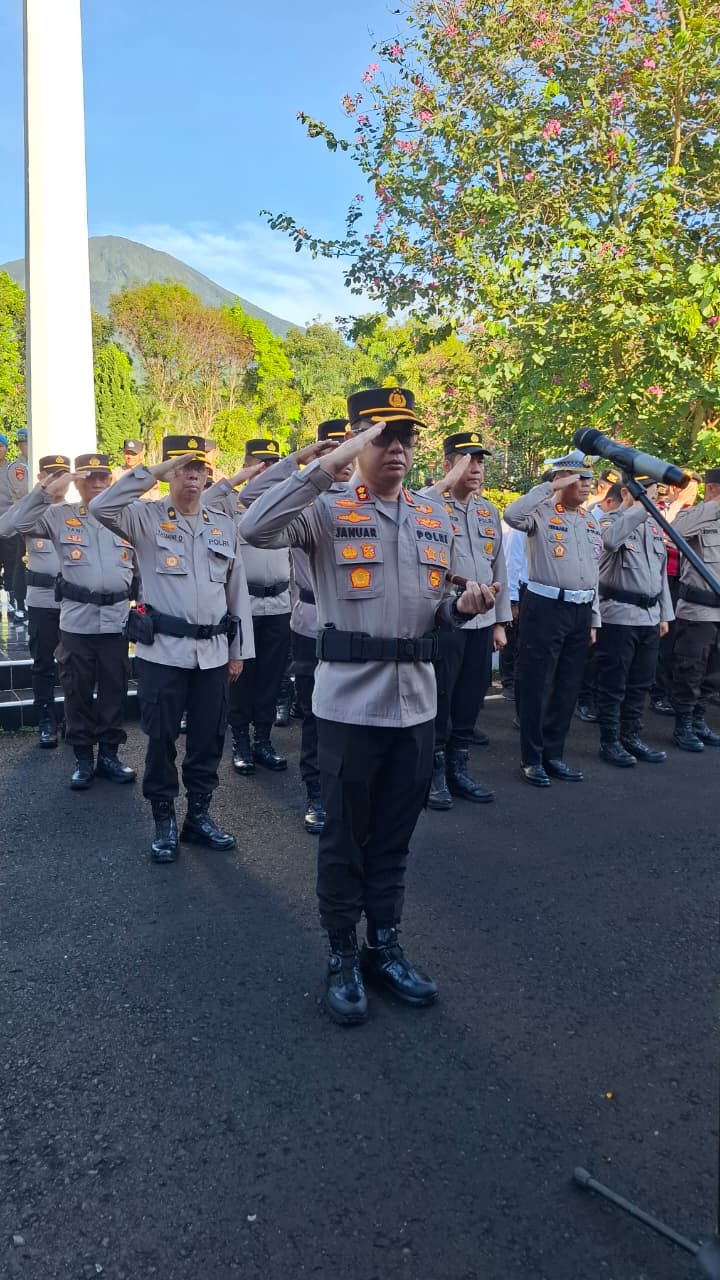 Di sisi lain, Polres Pagar Alam turut merasakan semangat kebanggaan tersebut dengan mengikuti kegiatan secara virtual melalui Zoom Meeting dari halaman Mapolres. Kegiatan ini dipimpin langsung oleh Kapolres Pagar Alam AKBP Januar Kencana Setia Persada, S.I.K., didampingi Wakapolres Kompol Wahyu Prasetyo, S.H., M.Si, serta diikuti para pejabat utama dan seluruh personel.