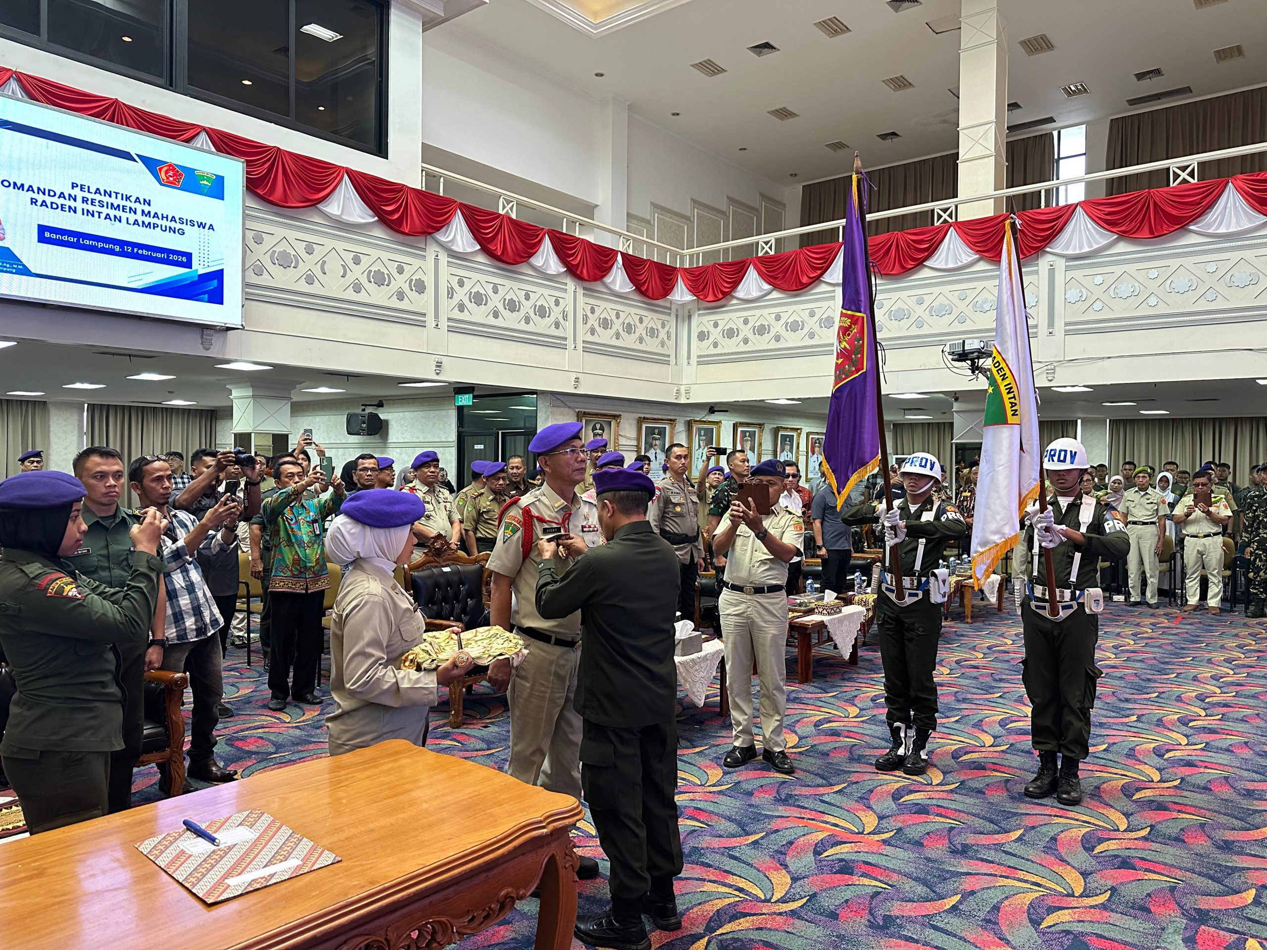 StarindoNews.Com | Lampung, – Bertempat di Balai Keratun, Komplek Kantor Gubernur Lampung kegiatan Pelantikan Komando Resimen Mahasiswa Raden Inten Lampung massa bakti 2026 – 2028, AKBP. VICKY DZULKARNAIN, S.Ag.,M.M.