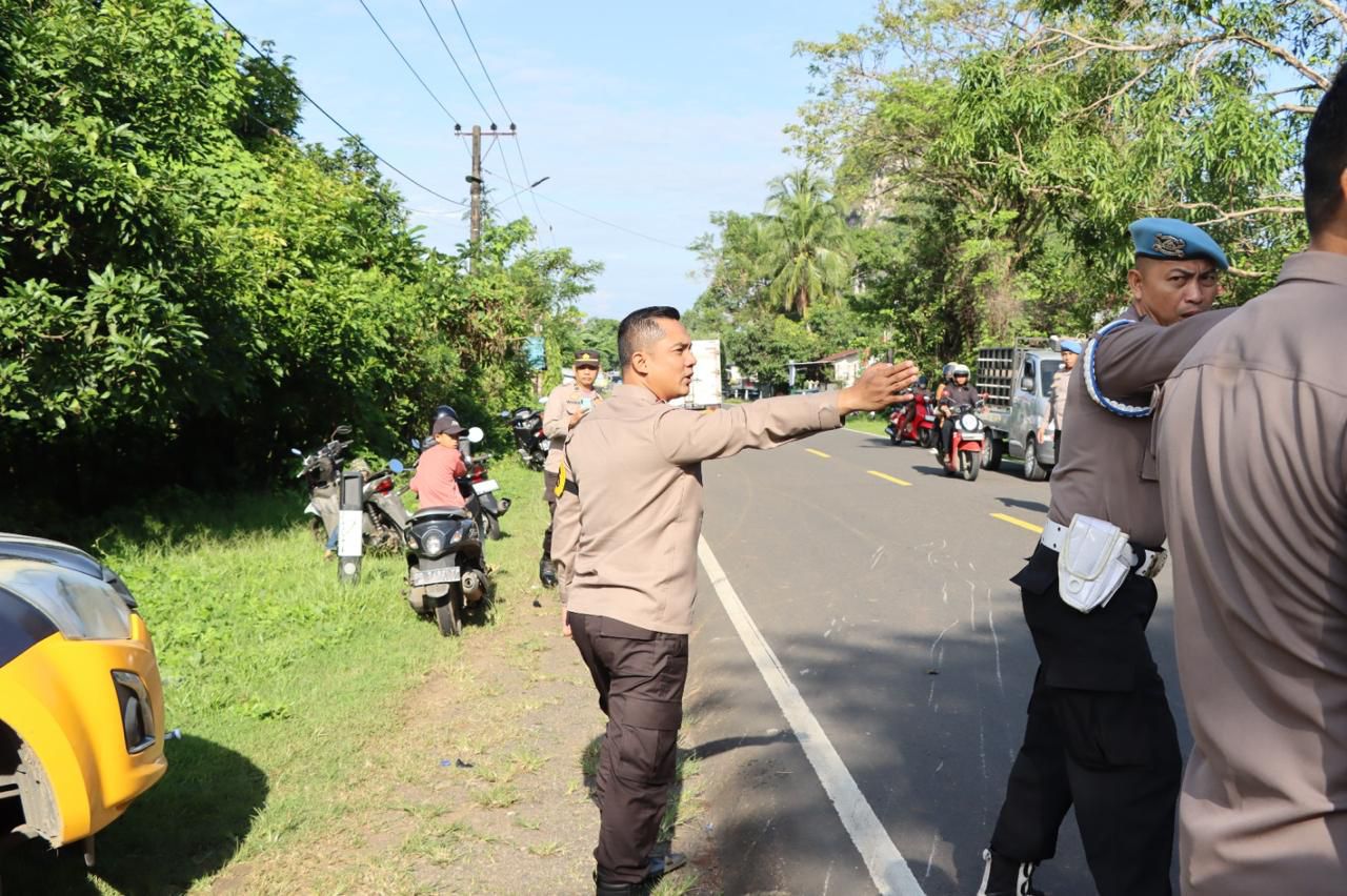 Mengetahui adanya kejadian tersebut, Kapolres Maros bersama PJU dan personel yang turut serta langsung menghentikan kendaraan dan mendatangi lokasi kejadian. Dengan sigap, mereka memberikan pertolongan awal kepada pengendara yang mengalami kecelakaan serta membantu mengevakuasi korban ke tempat yang lebih aman dari arus lalu lintas.
