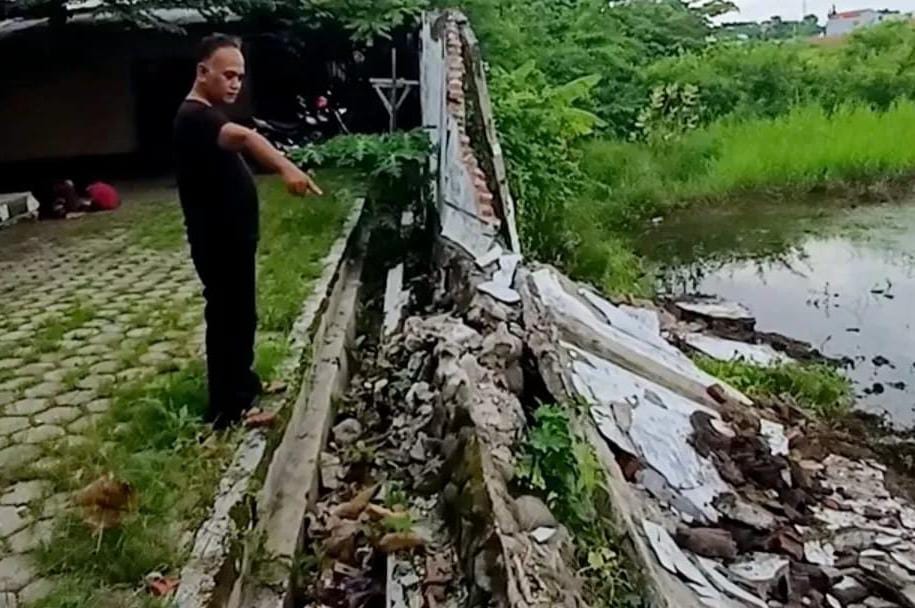 Dirinya juga menerangkan tembok pembatas dibangun pada tahun 1990 an , tembok pembatas dibelakang juga sudah ambruk.