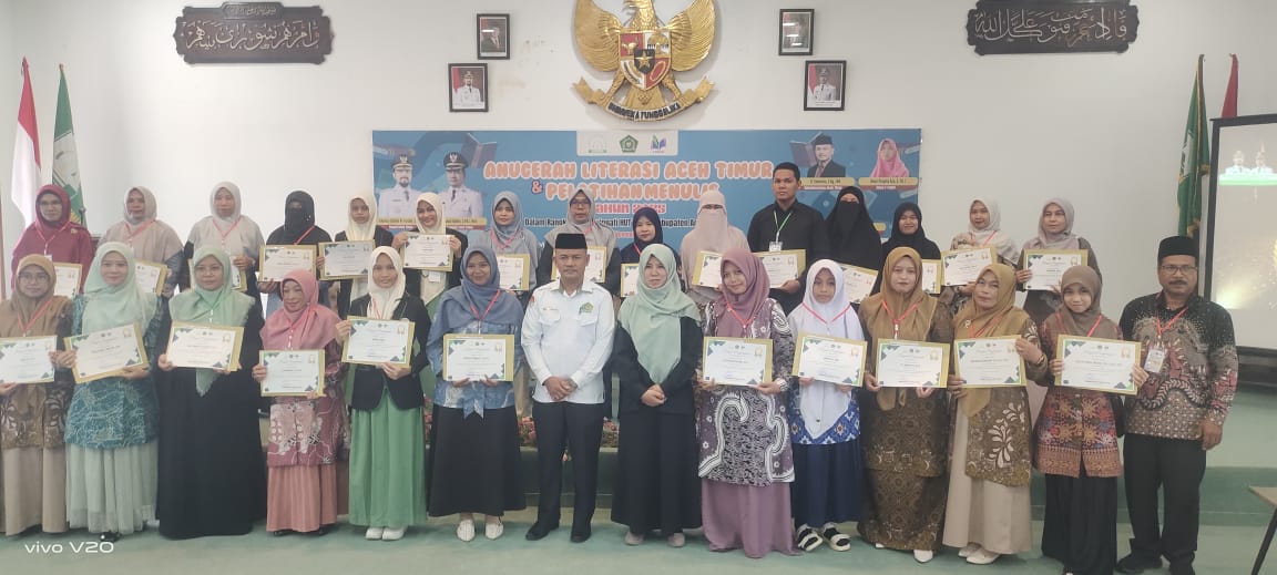 Aceh Timur-Starindonwes.com;Senin 17November 2025.Anugerah literasi Dinas Kemenag tahun 2025 Di buka langsung oleh Bupati Aceh Timur Iskandar,Usman Al.Farlaky.S.H.I,.M.Si di dampingin istri lismawani,serta kadis Kemenag H.Salamina S.Ag.MA,Plt Dinas Pendidikan Bustami,SPd, Ketua Panitia Dinar Puspita Ayu S.Pdi Di Aula Pendopo Bupati Senin-17-11-2025