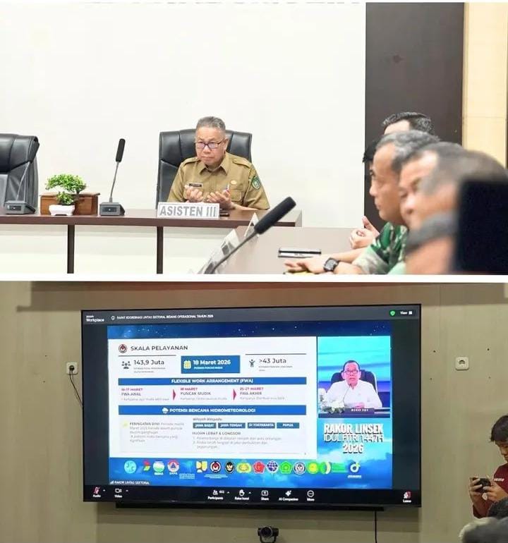 ASISTEN III HADIRI VIDCON RAKOR LINTAS SEKTORAL KESIAPAN OPERASI KETUPAT 2026