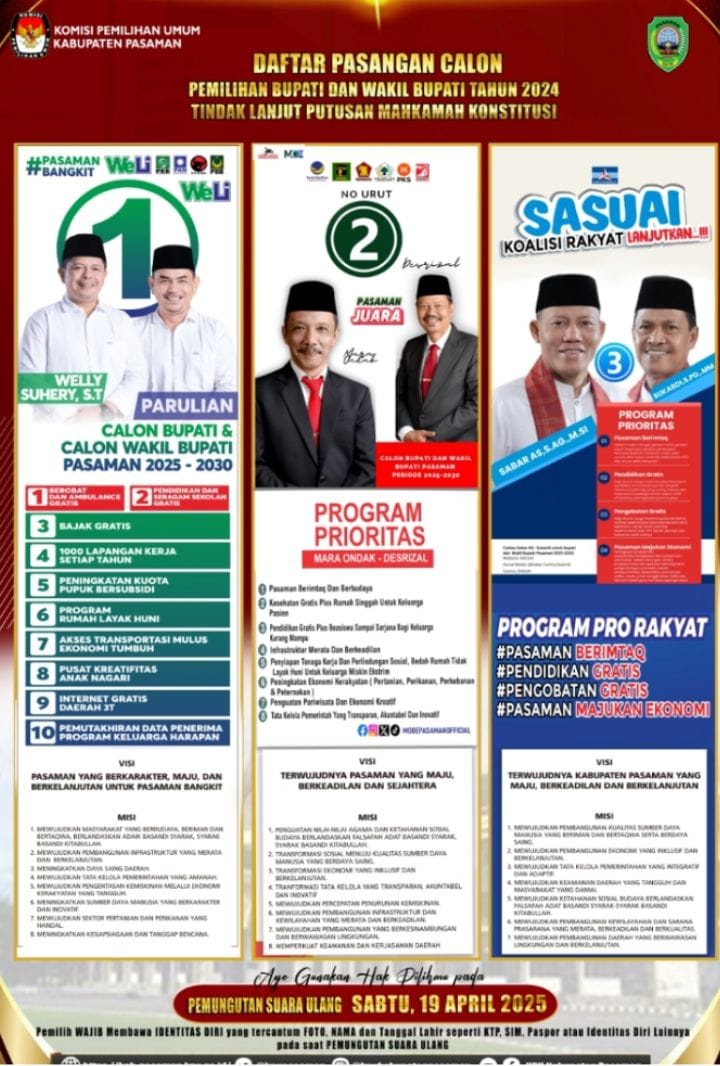 Ayo Datang Ke TPS, Sabtu 19 April 2025 Untuk PSU Pemilihan Bupati dan Wakil Bupati Pasaman