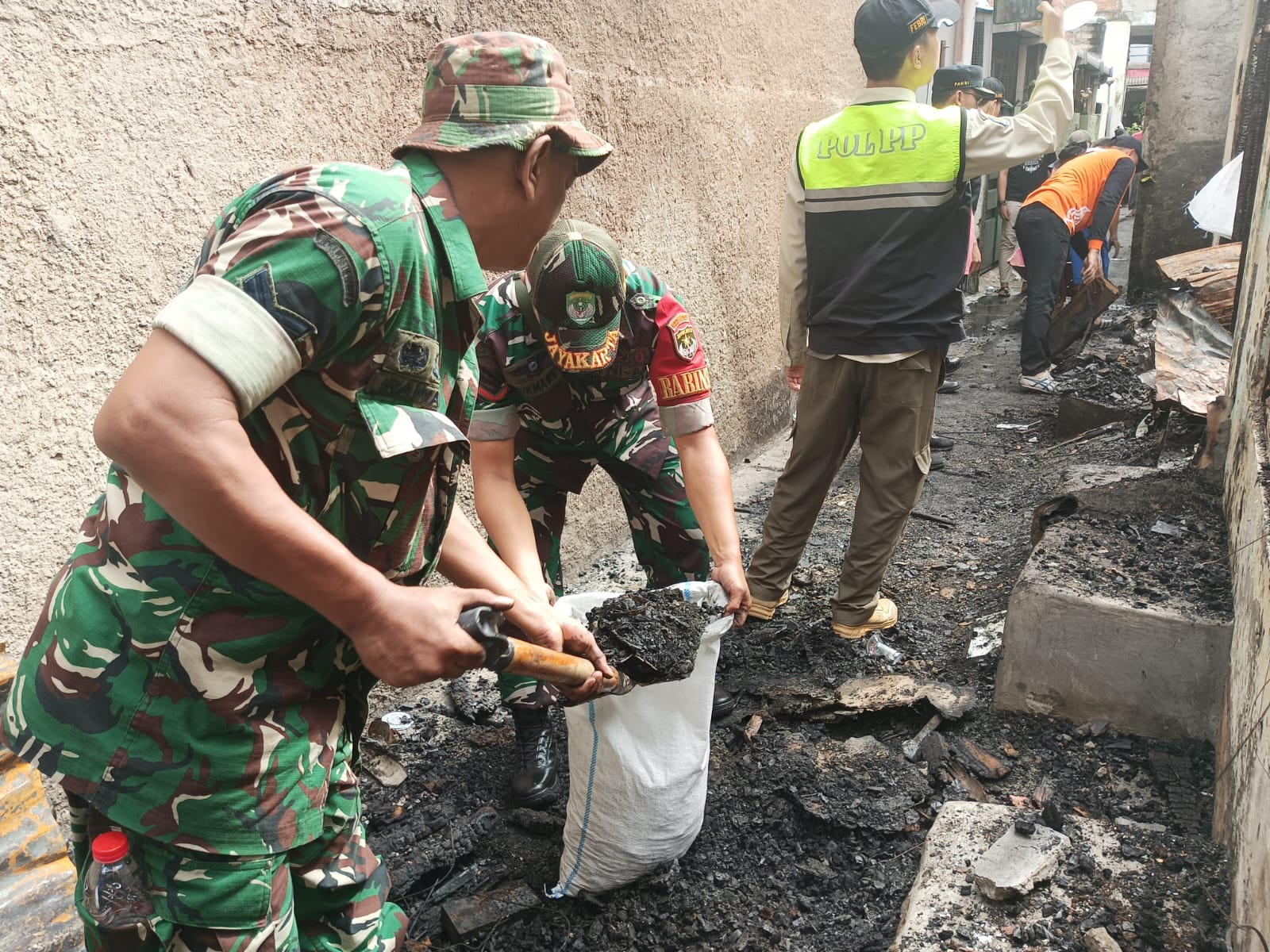 Akibar kebakaran itu ada empat rumah warga yang dilalap api bayak puing puing bangunan sisa kebakaran. Terkait hal tersebut guna membantu meringankan beban korban kebakaran Babinsa dan pihak kelurahan bersama warga membantu melaksanakan pembersihan pasca kebakaran.