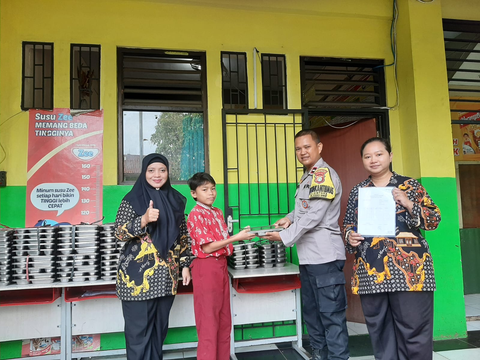 Bhabinkamtibmas Aipda Tedy Rivaldi Bantu Distribusi Makan Bergizi Gratis di SDN Bintara 1