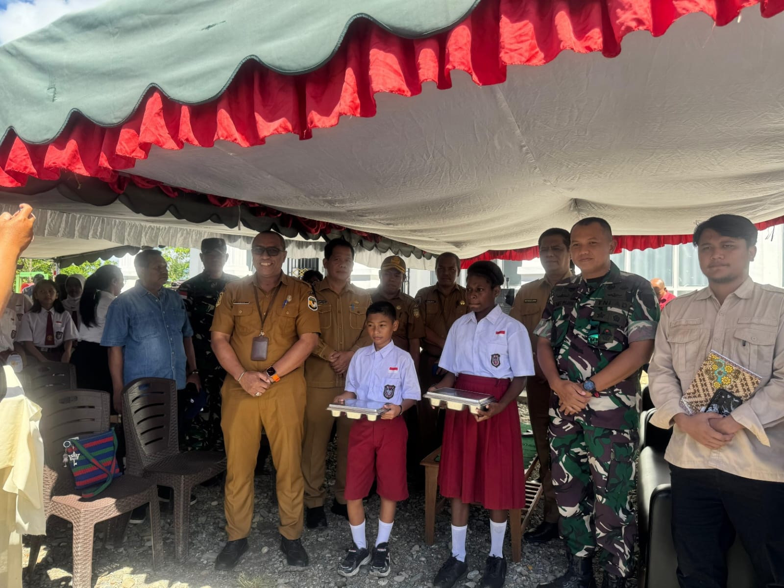 StarindoNews.com TIMIKA — Komandan Kodim 1710/Mimika, Letkol Inf M. Slamet Wijaya, S.Sos., M.Han., M.A., menghadiri Launching Program Makan Bergizi Gratis yang diselenggarakan di SD Inpres Nawaripi, Jl. Nawaripi, Kec. Inauga, Distrik Wania, Kab. Mimika, Selasa (29/7/2025).