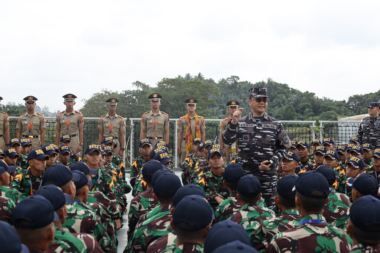 StarindoNews.com KABUPATEN BANGKA — Komandan Pangkalan TNI AL (Danlanal) Bangke Belitung (Babel) Kolonel Laut (P) Erwin Herdiyanto memimpin langsung Merflug kedatangan KRI Semarang – 594 yang mengangkut Taruna Akademi Angkatan Laut dalam rangka Latek Prajalasesiya Taruna Tahun 2025 di dermaga Pelabuhan Pelindo Belinyu Kab. Bangka, Minggu (02/02/2025).