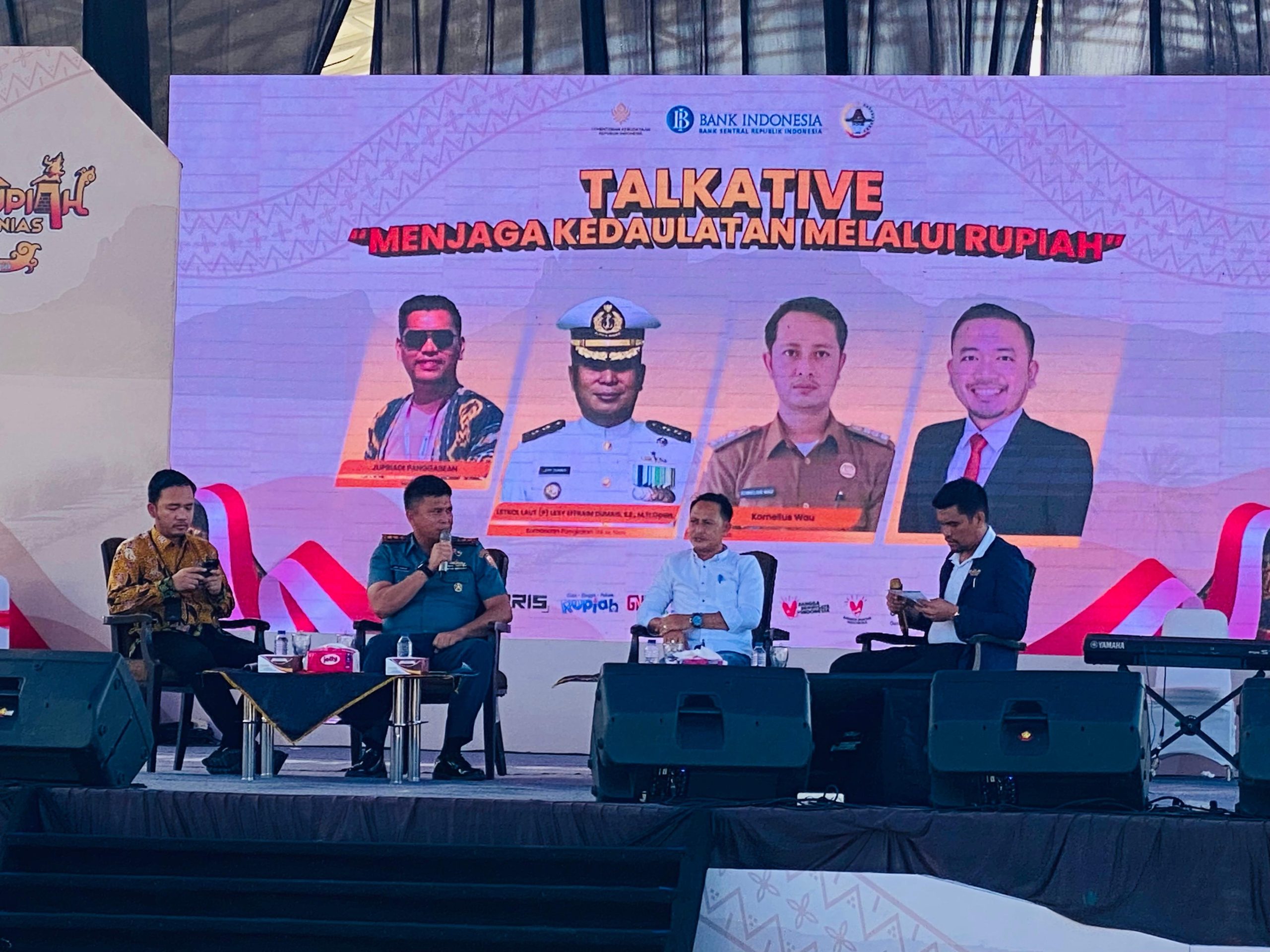 Danlanal Nias menyampaikan beberapa hal diantaranya, Strategi TNI AL dukung penggunaan Rupiah di wilayah NKRI sesuai Amanat UU Nomor 34 Tahun 2004 TNI AL sebagai salah satu alat negara di Bidang Pertahananan, Tingkatkan kerjasama dengan pemerintah dan masyarakat, Laksanakan pembinaan masyarakat dalam meningkatkan kesadaran menjaga kedaulatan NKRI, Pengendalian keamanan wilayah laut khususnya kita berkerjasama dengan pemerintah, Menjaga keamanan Kedaulatan NKRI menggunakan KRI dan kami dukung giat Jelajah Rupiah ini dilaksanakan di daerah terpencil, Kita memiliki Posal tersebar di Wilayah Kepulauan Nias hal yang tidak diinginkan seperti mata uang asing dan rupiah palsu dapat dimonitor di wilayah kepulauan Nias kami bersama instansi Polri dan TNI AD juga memonitor, Kami sangat mendukung kegiatan Jelajah Rupiah ini berada di pulau-pulau terpencil sehingga BI bisa memonitor dan edukasi masyarakat sesuai motto Jelajah Rupiah yaitu 3 T (Terdepan, Terluar, Terpencil).