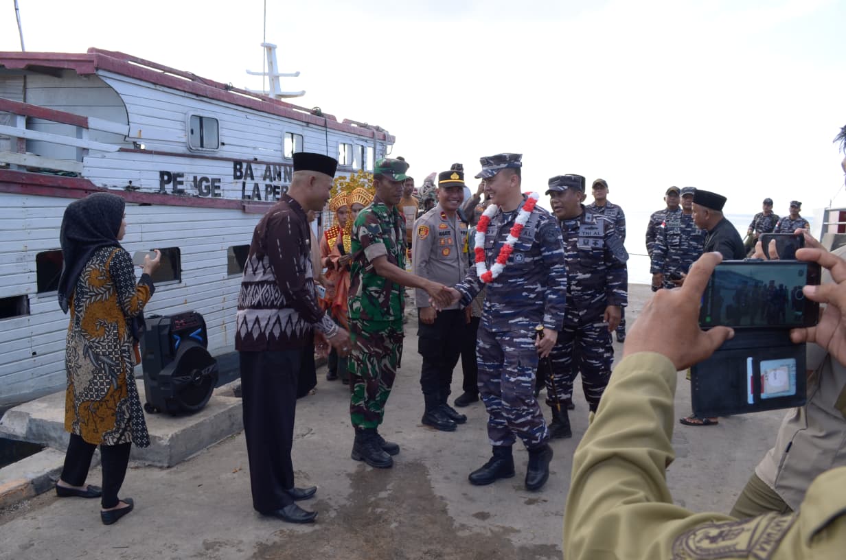 Dengan menggunakan Kapal TNI AL (KAL) Sengiap, Danlanal Ranai Kolonel Laut (P) Ady Dharmawan tiba di Dermaga Pelabuhan Rakyat Desa Sabang Barat Pulau Midai.