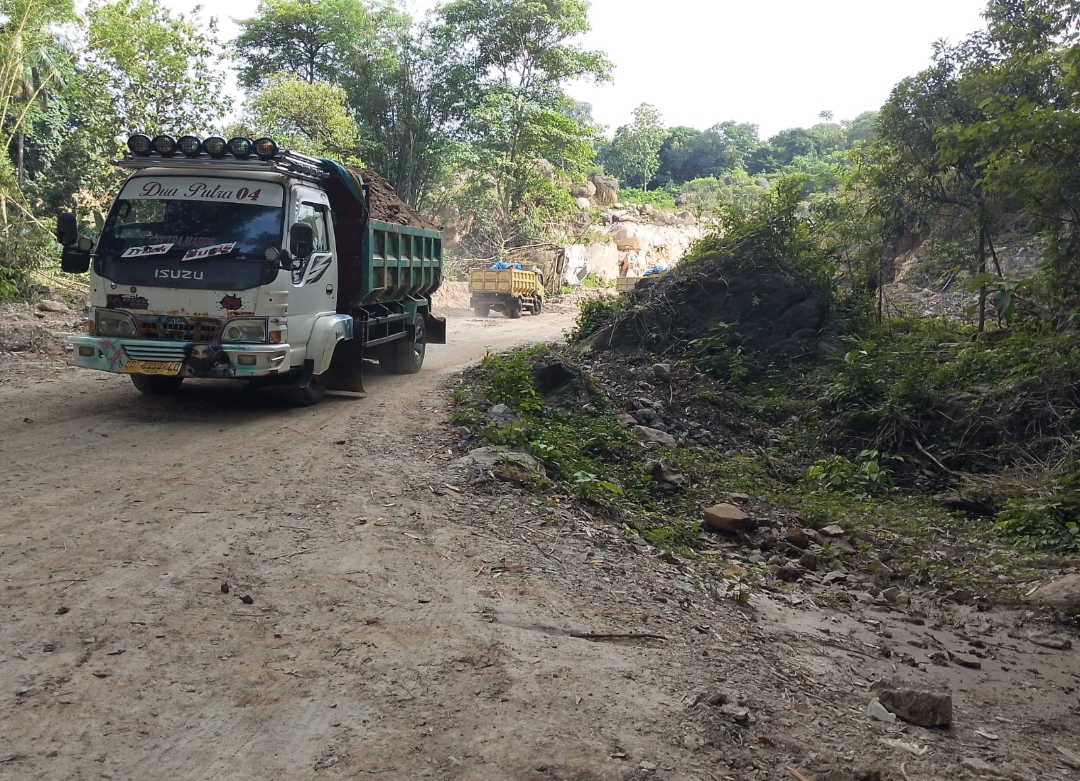 Selainmerusak lingkungan, lalu lintas kendaraan berat yang keluar-masuk lokasi menuju jalan poros nasional diduga tidak memiliki persetujuan dishub atau rekomendasi teknis jalan.