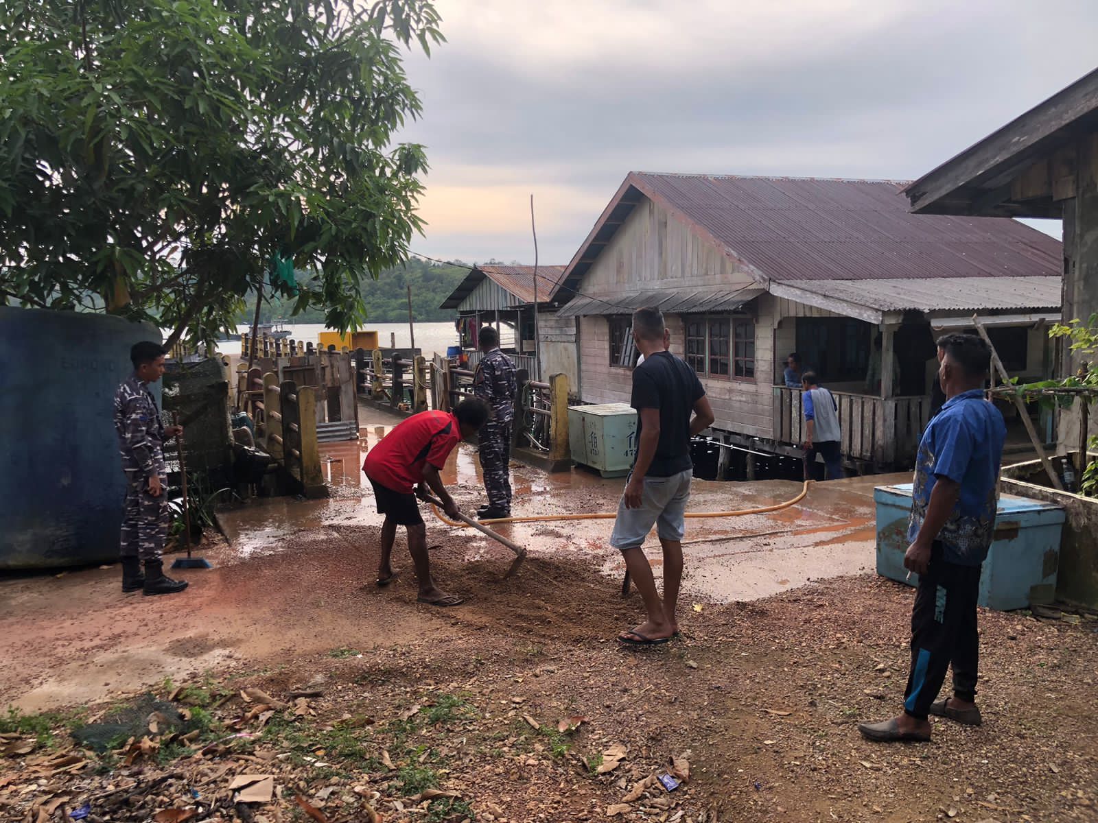 StarindoNews.com DABO SINGKEP –Tunjukan semangat gotong royong, Personel Posal Pulau Mas bersama Masyarakat Desa Posek, Pulau Mas Bangsal bersihkan area pelabuhan, Sabtu (12/7/2025).