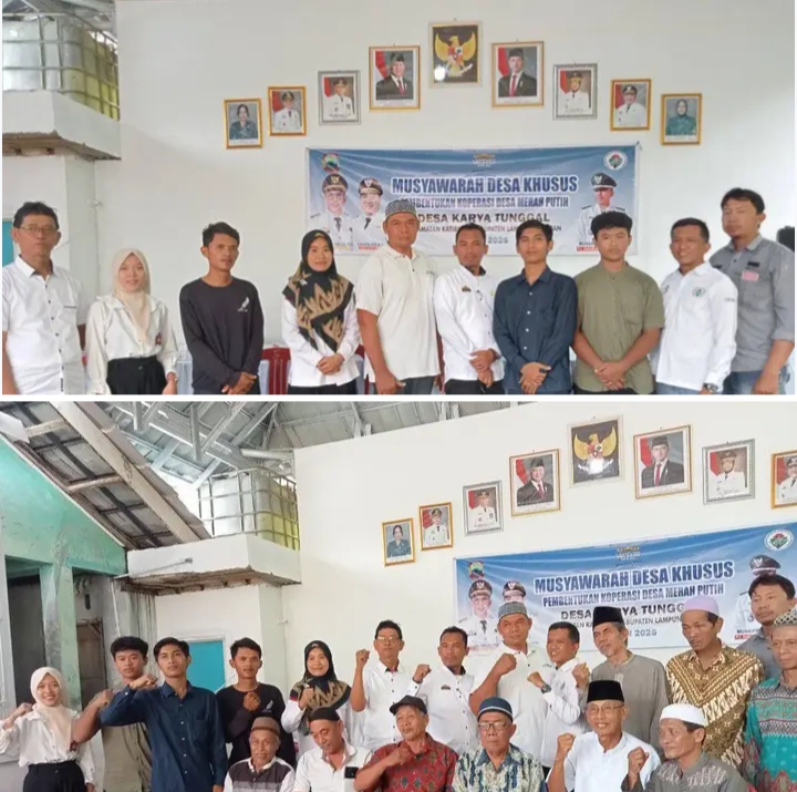 www.starindonews.com.Lampung selatan,- Menindak lanjuti instruksi presiden Republik Indonesia nomor sembilan tahun 2025, Desa karya tunggal, Kecamatan Katibung, kabupaten Lampung Selatan, propinsi Lampung selenggarakan Musyawarah Desa Khusus, Pembentukan koprasi Desa Merah Putih.