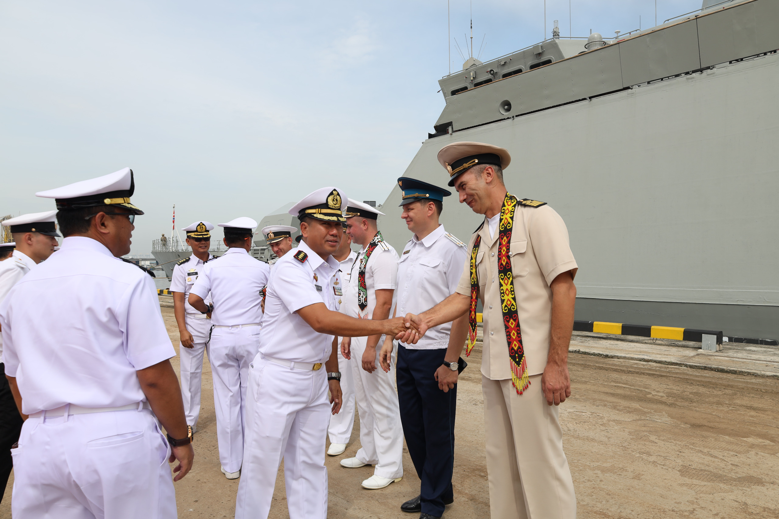 Setelah bersandar di pelabuhan, sejumlah personel Angkatan Laut Rusia langsung menuruni kapal dan disambut oleh Wadan Lantamal beserta staf. Pada kesempatan tersebut Wadan Lantamal menyampaikan ucapan selamat datang dan sambutan Danlantamal III serta berharap, semoga hubungan kerja sama antara TNI AL dengan Angkatan Laut Russia dapat terjalin erat dan semakin baik.