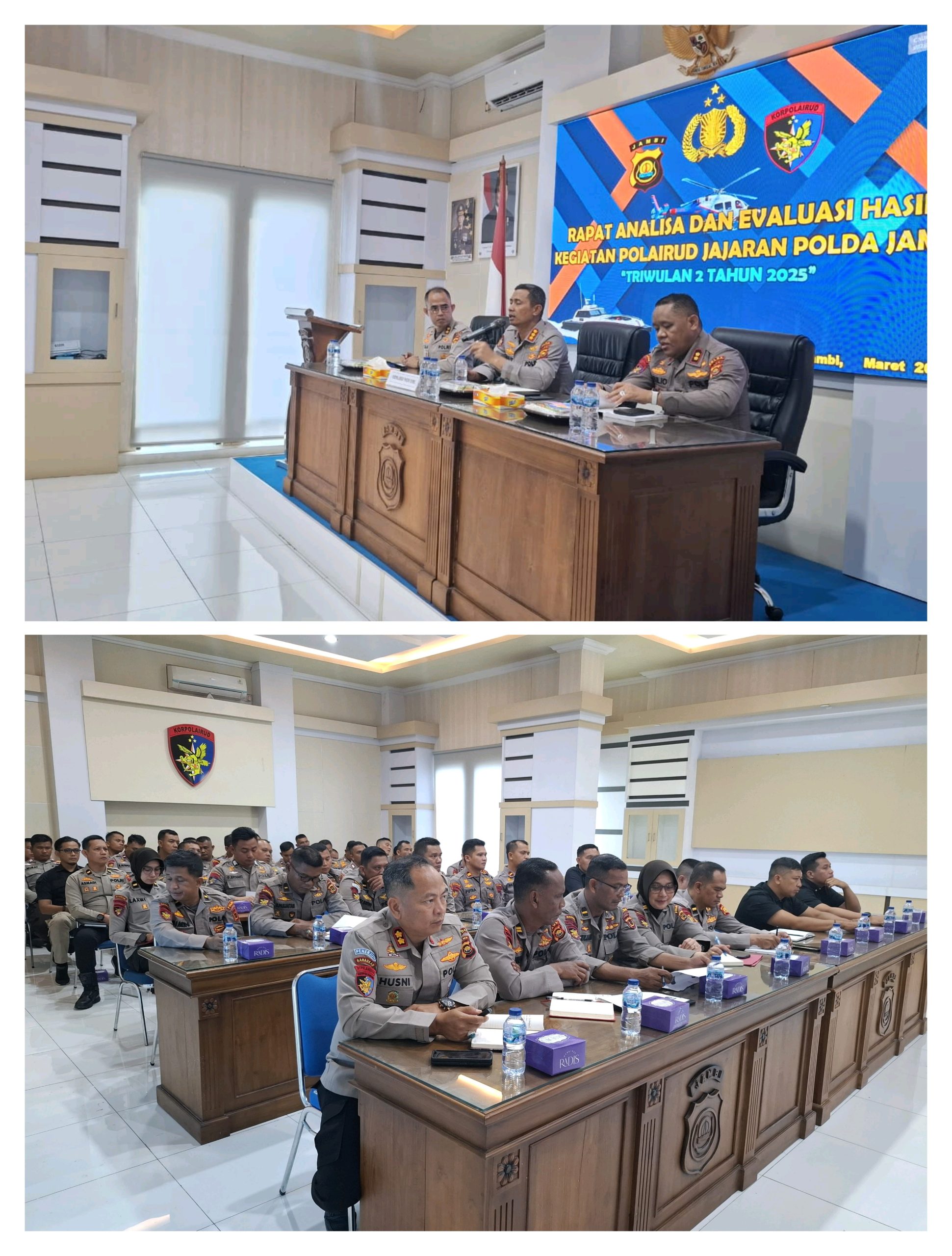 STARINDONEWS.COM, //Polairud Jambi- Direktorat Kepolisian Perairan dan Udara (Ditpolairud) Polda Jambi menggelar kegiatan Analisa dan Evaluasi (Anev) tentang hasil kegiatan Polairud Jajaran Polda Jambi pada Triwulan ke dua tahun 2025 (15/07/25)