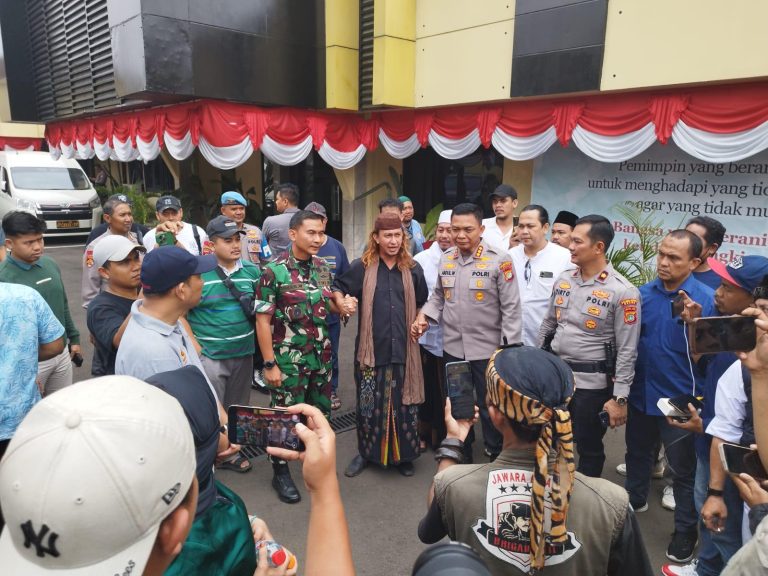 Starindonews.com | DEPOK, Habib Bahar bin Smith dengan Unsur Forum Koordinasi Pimpinan Daerah (Forkopimda) mendatangin Polres Depok demi melakukan Mediasi Damai, didampingin oleh Kapolres Metro Depok dan Komandan Kodim 0508/Depok, Minggu (27/07/2025) di Halaman Polres Depok.