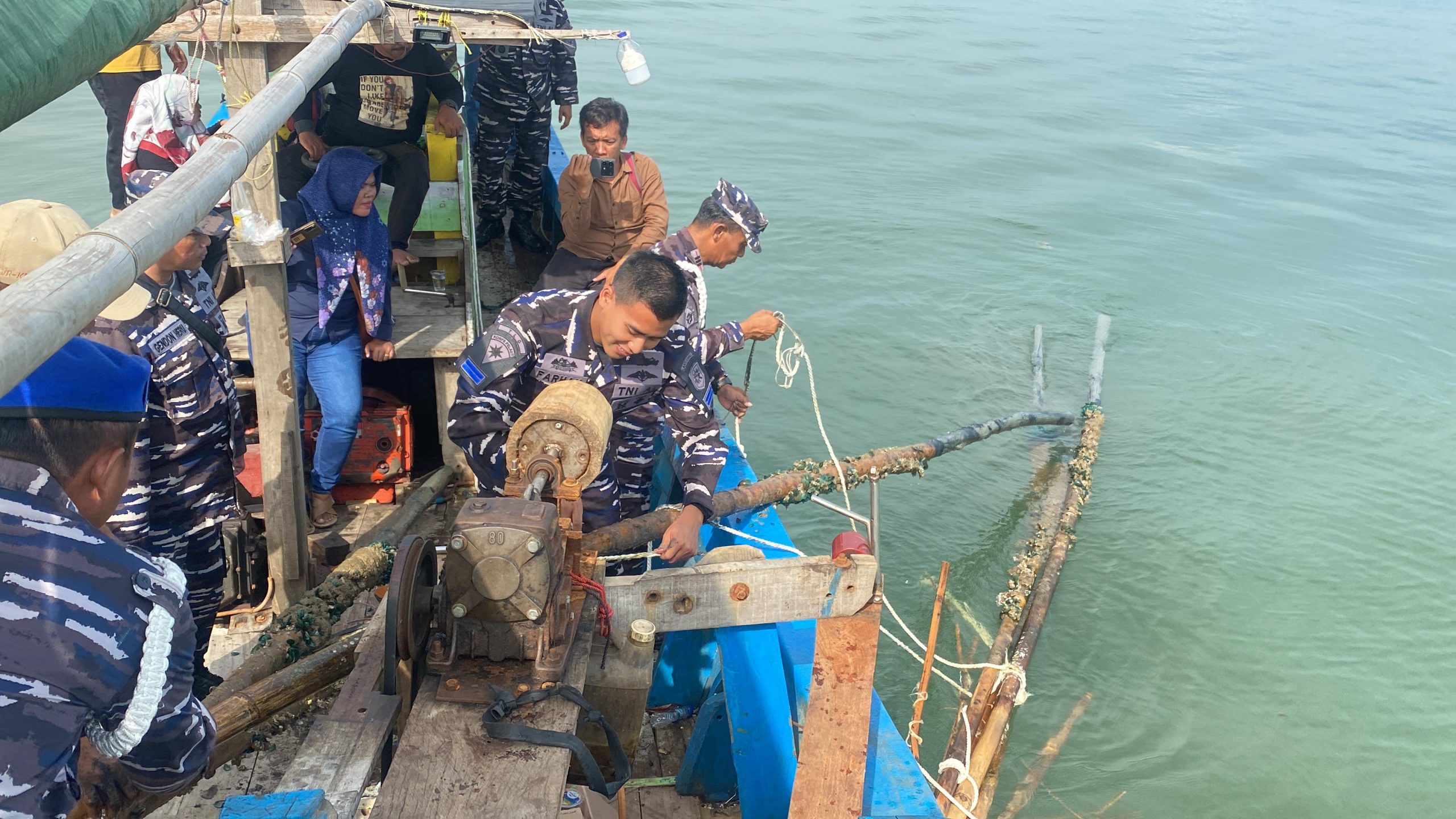 Adapun personel hari ini yang turun sebanyak 100 orang prajurit Lanal Banten dan di bantu 100 orang Nelayan Kronjo dengan menurunkan 1 unit RBB Pulau Deli Lanal Banten dan 21 unit Kapal Nelayan.