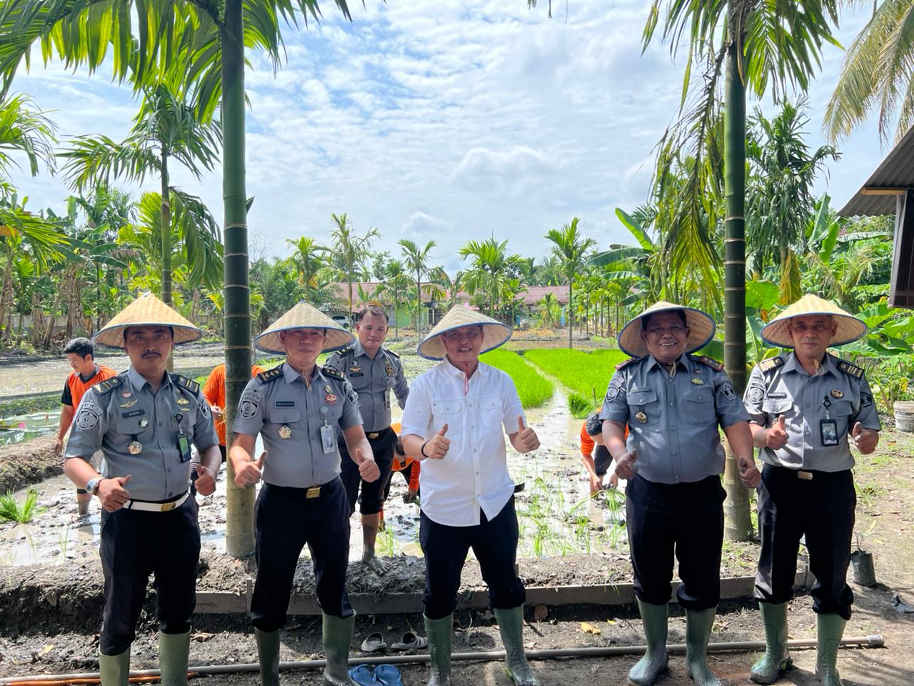 StarindoNews.Com | Muara Bulian – Hidayat, Kakanwil Ditjenpas Jambi Tanam Padi Dukung Ketahanan Pangan diLapas Muara Bulian. Kunjungan ini disambut hangat oleh Kalapas Muara Bulian, Dede Mulyadi, Pejabat struktural dan Pegawai Lapas Muara Bulian.