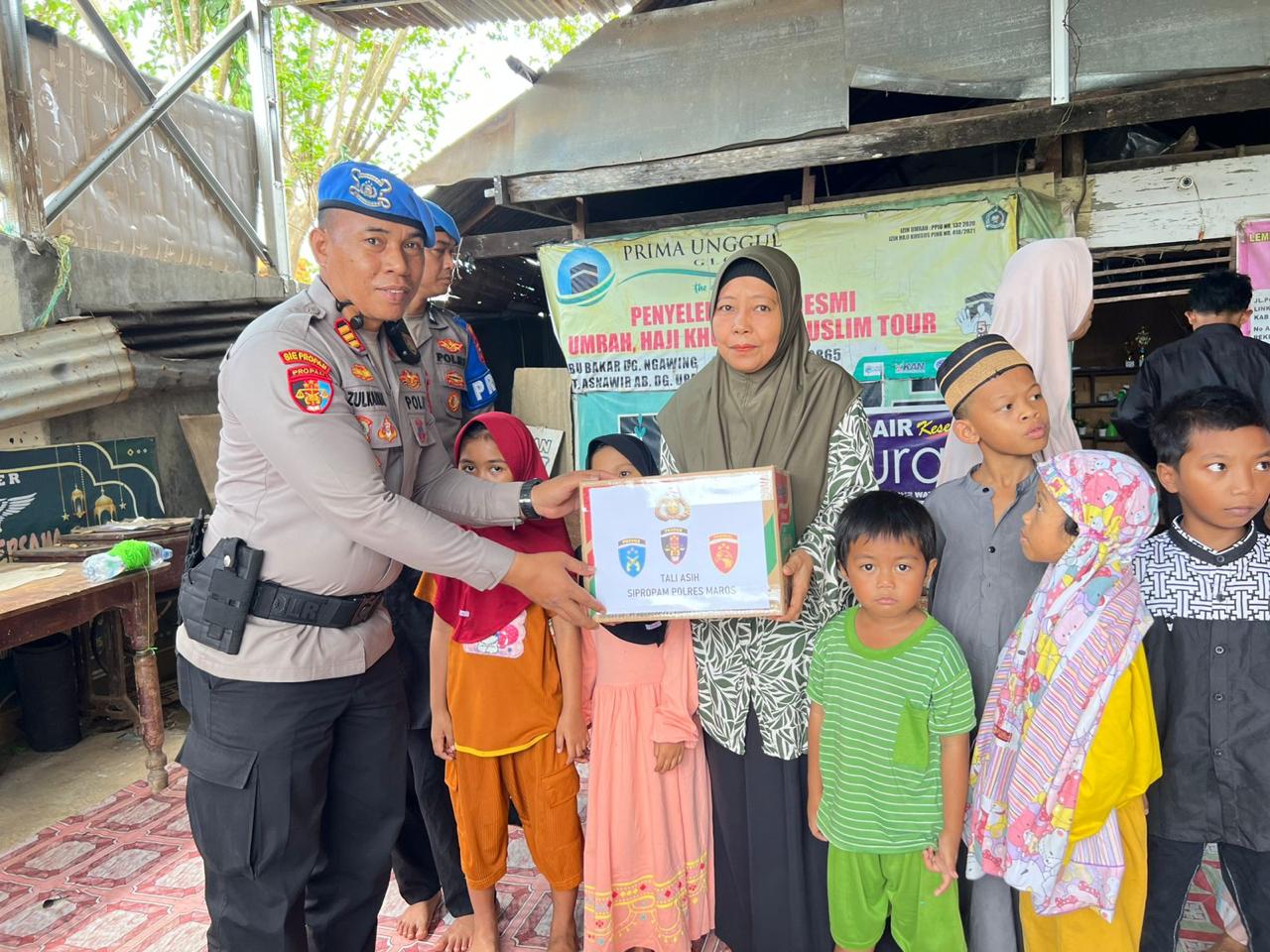 Dalam kegiatan tersebut, personel Sipropam yang dipimpin langsung Kasi Propam Polres Maros AKP Zulkarnaen, S.E menyerahkan bantuan berupa kebutuhan pokok, sembako dan tali asih kepada anak-anak yatim panti asuhan.