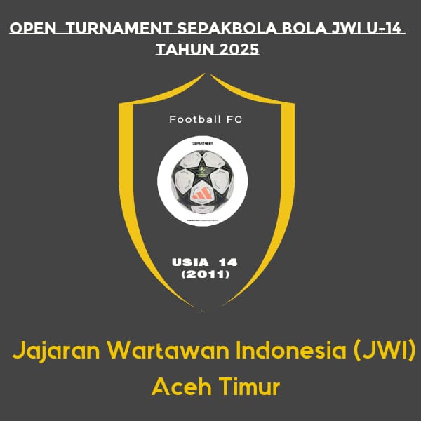Aceh Timur- Starindonews.com;1 Januari 2025. Jajaran Wartawan Indonesia (JWI) Kabupaten Aceh Timur akan menggelar Open Turnamen Sepak Bola Usia 14 Tahun Piala JWI Aceh Timur 2025. Turnamen ini direncanakan berlangsung pada awal tahun 2025 dan terbuka untuk seluruh kabupaten/kota di Provinsi Aceh.