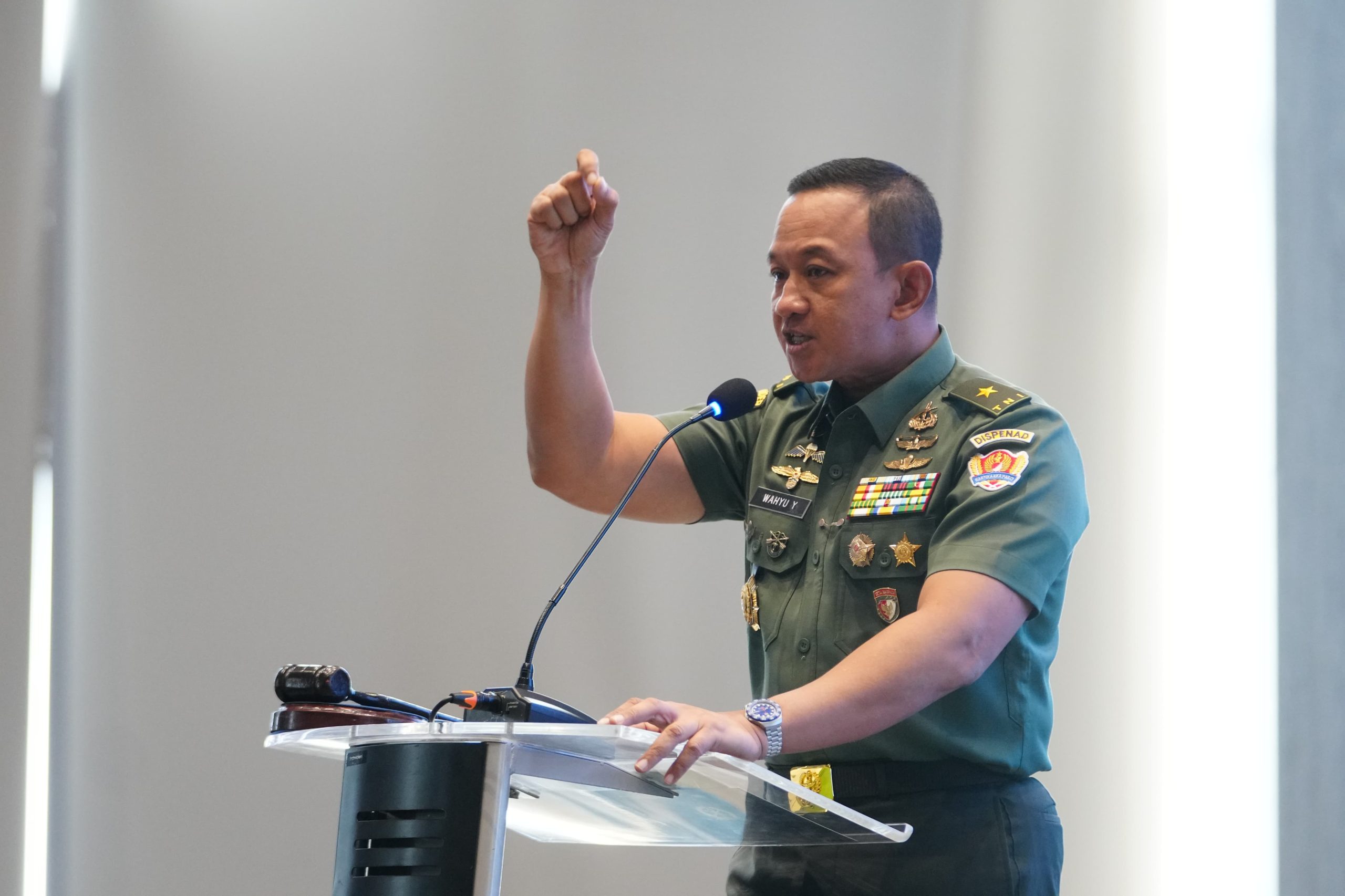 StarindoNews.com JAKARTA – Kepala Dinas Penerangan Angkatan Darat (Kadispenad) Brigjen TNI Wahyu Yudhayana, S.E., M.M., menegaskan pentingnya insan penerangan TNI AD untuk senantiasa mengikuti perkembangan informasi terkini dan komunikatif dalam menyampaikan program-program TNI AD kepada publik. Hal tersebut disampaikan saat membuka Rapat Evaluasi (Rapev) Bidang Penerangan TNI AD Semester I TA 2025 di Kemayoran, Jakarta, Senin (7/7/2025).
