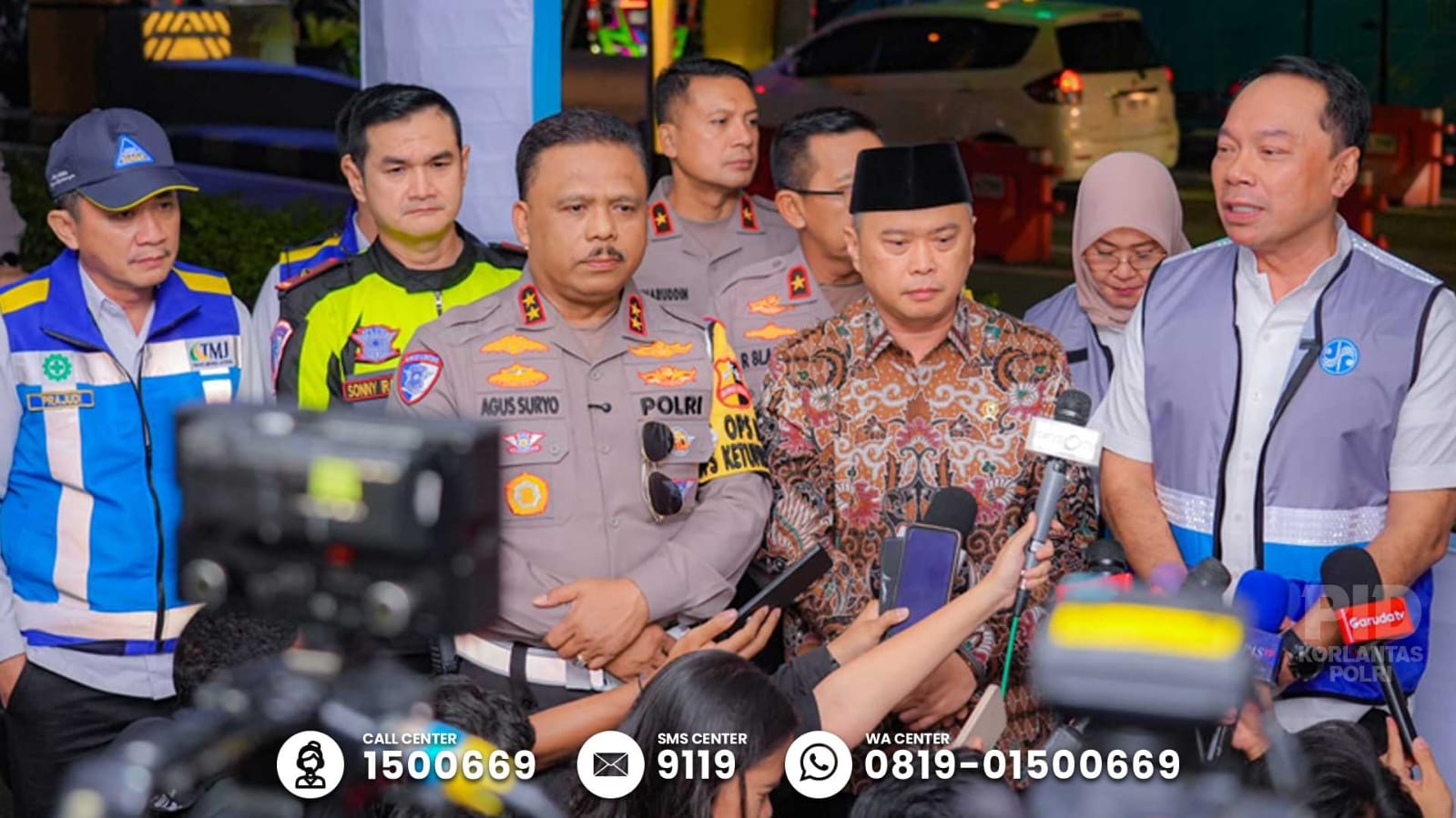 StarindoNews.com SEMARANG — Kakorlantas Polri Irjen Pol Drs. Agus Suryonugroho S.H, M.Hum mendampingi Menteri Perhubungan (Menhub) Dudy Purwagandhi memantau pergerakan arus balik di GT Banyumanik Semarang, Jawa Tengah, Sabtu (5/4/2025).