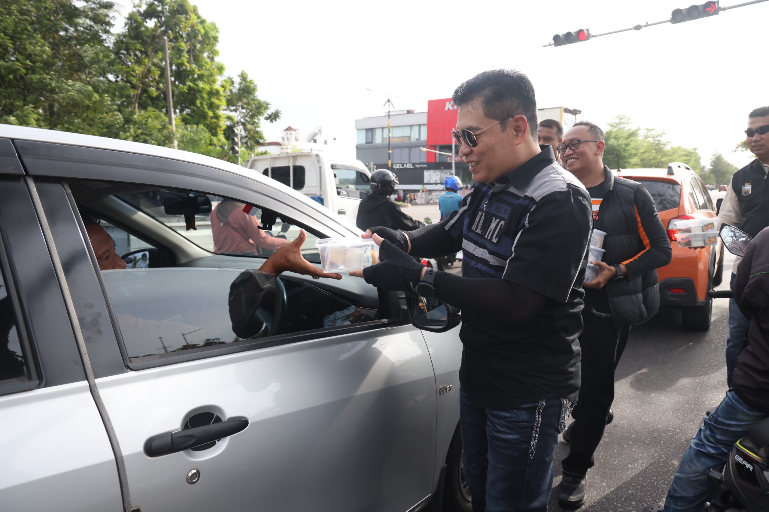 Dalam kegiatan tersebut, Kapolda Kepri Irjen Pol. Asep Safrudin, S.I.K., M.H., bersama rombongan turun langsung membagikan helm dan takjil kepada para pengendara motor yang melintas di lampu merah simpang jalan.