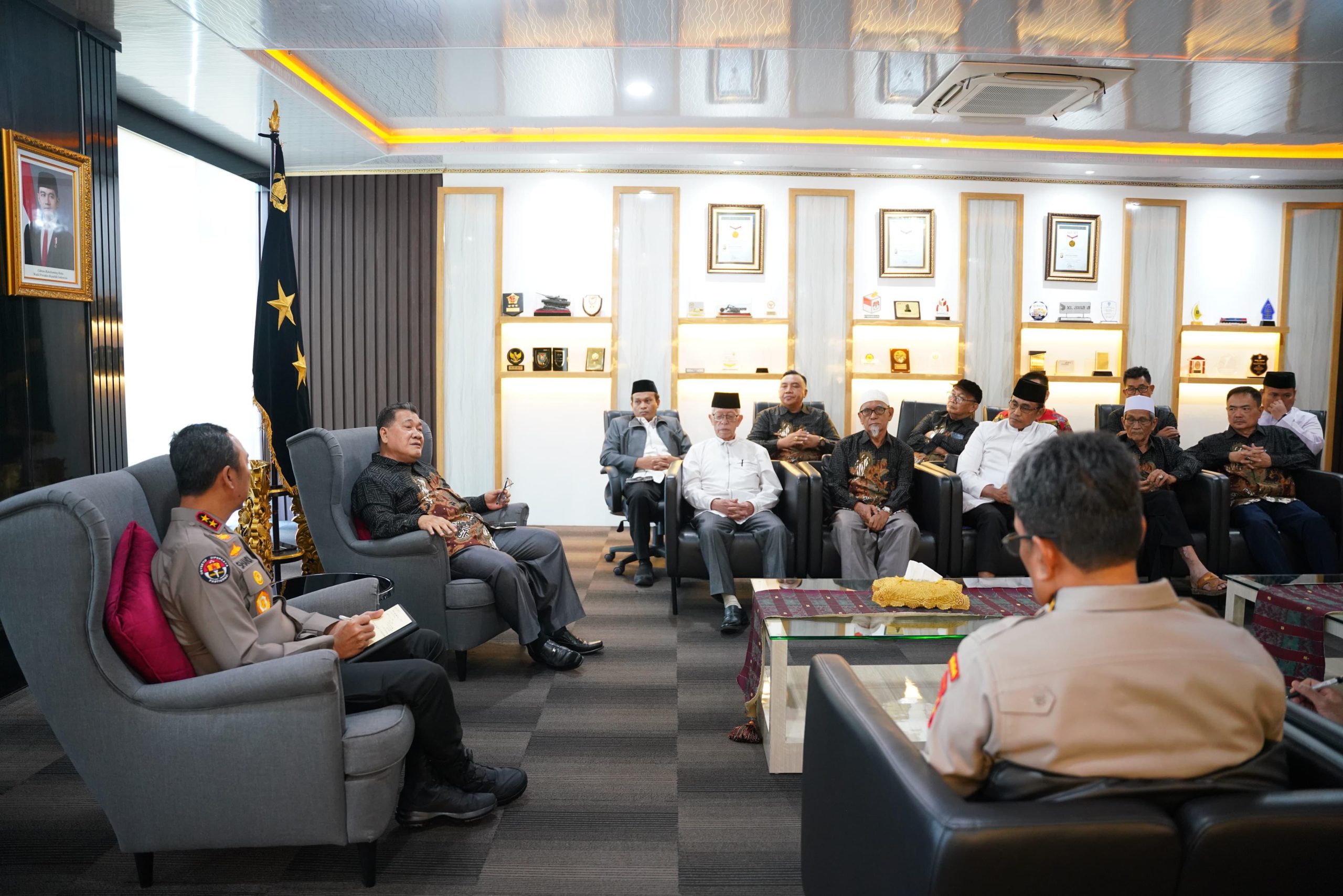 Palembang – Kapolda Sumatera Selatan, Irjen Sandi Nugroho menerima silaturahmi dari Forum Kerukunan Umat Beragama(FKUB), Majelis Ulama Indonesia(MUI) dan Lembaga Dakwah Islam Indonesia(LDII) pada hari Jumat (20/2/2026) sekitar pukul 14.30 WIB di Ruang Delegasi Lantai 2 Gedung Presisi Mapolda Sumsel.