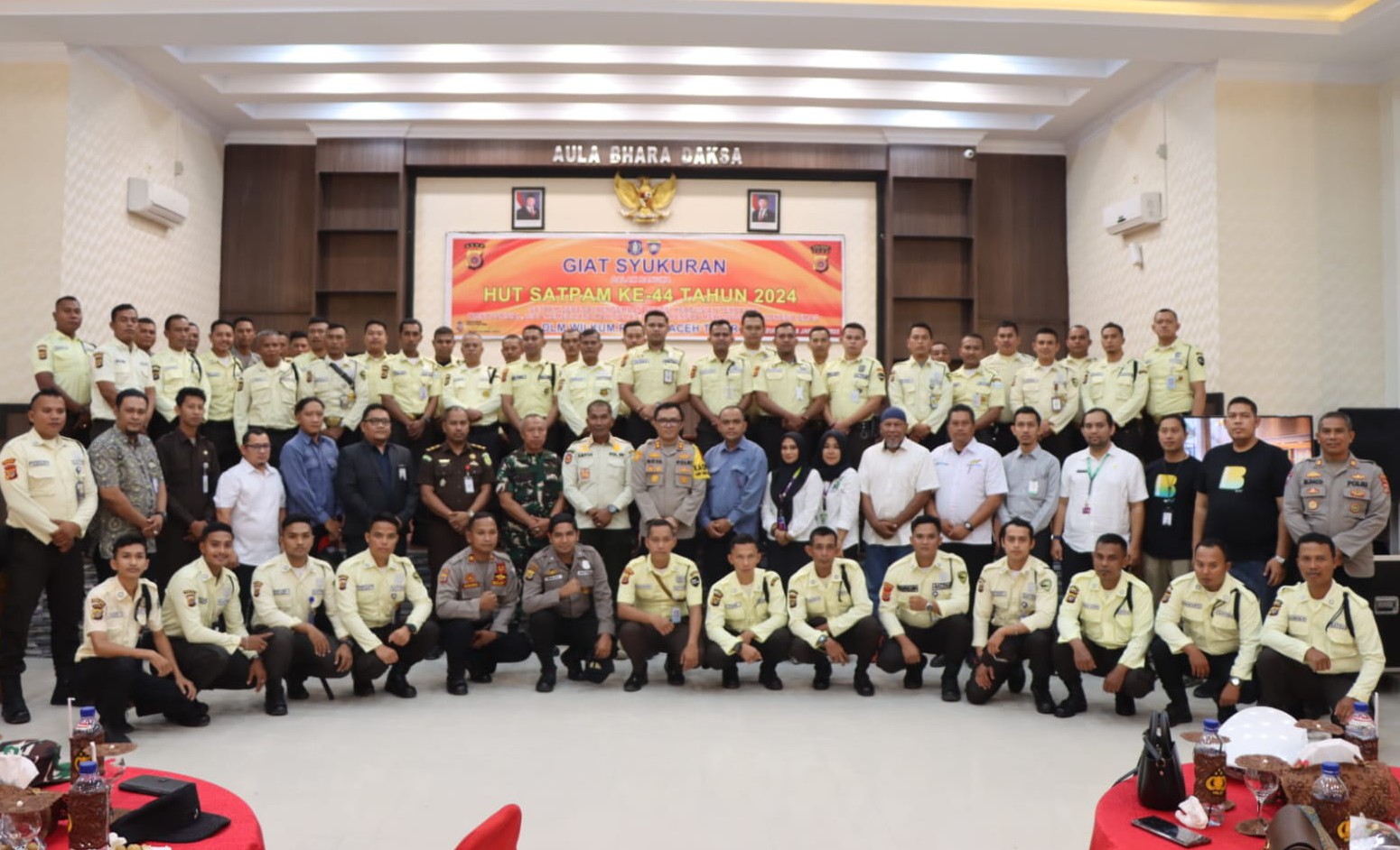 Aceh Timur-Starindonews.com.Rabu 8 January 2028.Polres Aceh Timur, Polda Aceh menggelar Syukuran HUT Satpam ke-44 Tahun 2024 di Aula Bhara Daksa, Rabu (08/01/2025) pagi. Kegiatan tersebut dipimpin Kapolres Aceh Timur, AKBP Nova Suryandaru, S.I.K. dan dihadiri PJU Polres Aceh Timur, Perwakilan Perusahaan Pengguna Jasa Satpam, dan Perwakilan Satpam dalam wilayah hukum Polres Aceh Timur.