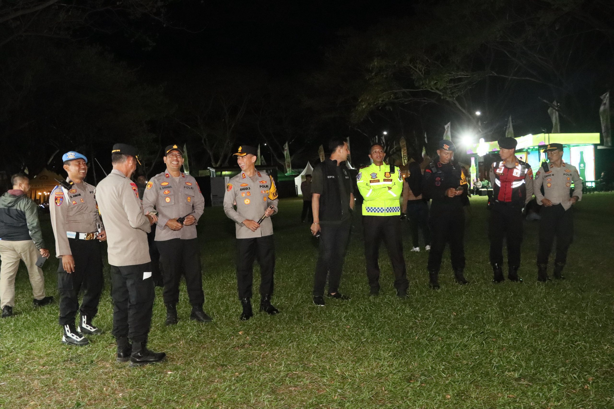 Kapolres Kediri Kota AKBP Anggi Saputra Ibrahim, S.H., S.I.K., M.H., memimpin langsung kegiatan pengamanan di lapangan selama berlangsungnya konser.