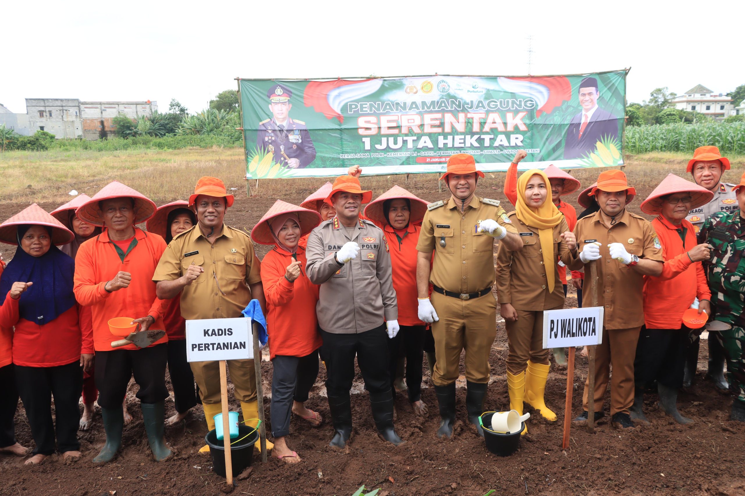 StarindoNews.com KOTA BEKASI – Dalam rangka mendukung program swasembada pangan nasional tahun 2025, Kapolres Metro Bekasi Kota, Kombes Pol. Dani Hamdani, S.I.K, M.P.M, memimpin kegiatan penanaman jagung serentak 1 juta hektar di wilayah Kota Bekasi pada Selasa, ( 21/1/ 2025).