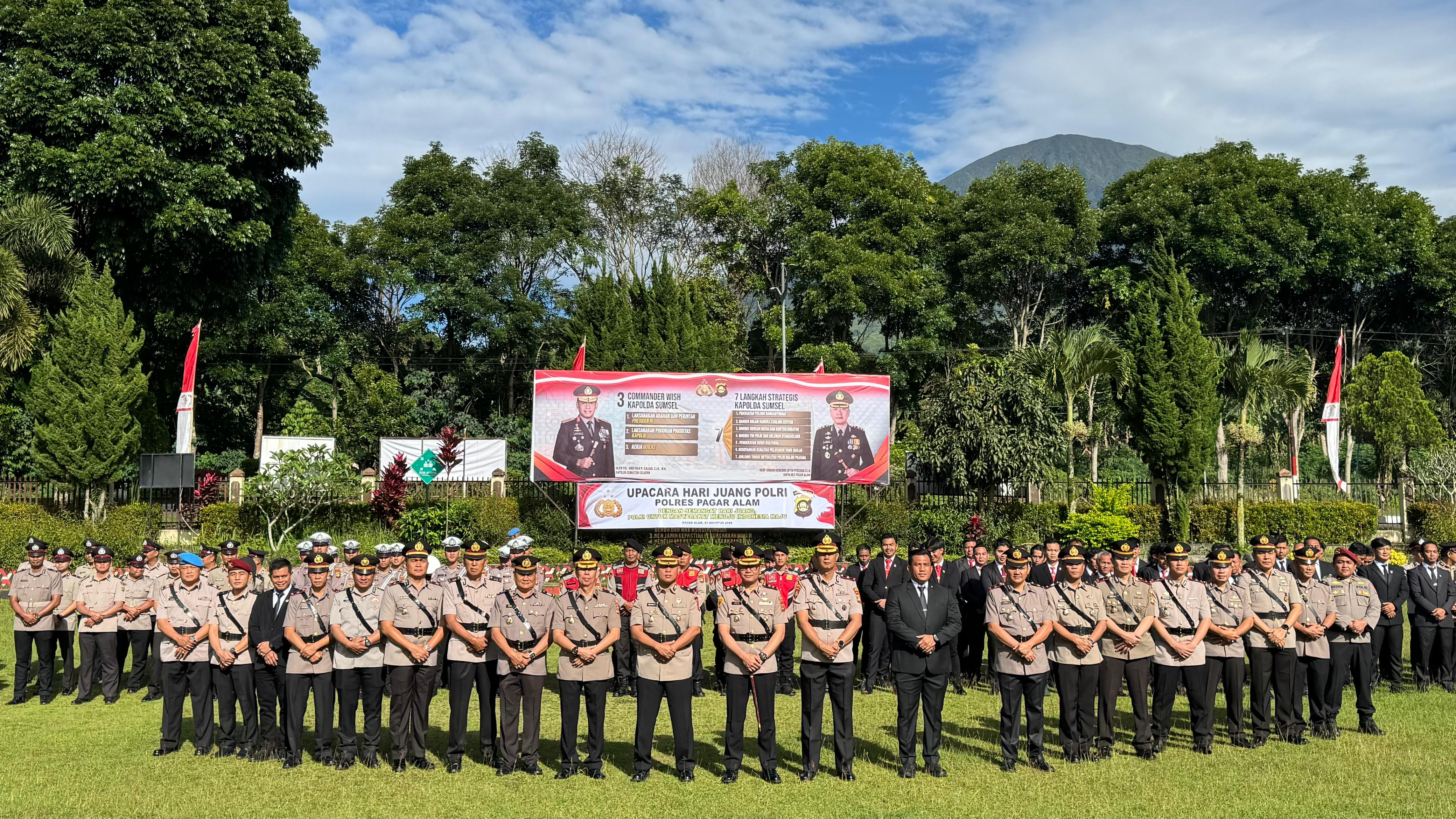 Starindonews.com Kamis 21 Agustus 2025 PPagaralam Sum-Sel – Kapolres Pagaralam AKBP Januar Kencana Setia Persada, S.I.K memimpin langsung upacara peringatan Hari Juang Polri di halaman Mapolres Pagaralam pada Kamis (21/8/2025) pukul 08.00 WIB. Kegiatan ini diikuti oleh Waka Polres, para pejabat utama, brigadir serta ASN Polri dengan penuh khidmat.Hari Juang Polri memiliki sejarah penting, dimana pada 21 Agustus 1945, Inspektur Polisi Kelas I Muhammad Jasin memimpin apel di Markas Polisi Istimewa Surabaya dan membacakan Proklamasi Polisi sebagai bentuk kesetiaan kepada Republik Indonesia. Momentum bersejarah ini menegaskan peran kepolisian sebagai garda terdepan dalam menjaga keamanan bangsa pasca proklamasi kemerdekaan.Penetapan 21 Agustus sebagai Hari Juang Polri kemudian dikuatkan melalui Keputusan Kapolri Jenderal Listyo Sigit Prabowo, yang tertuang dalam KEP/1325/VII/2024 tentang Tata Upacara Hari Juang Polri. Hal ini menjadi pengingat bagi seluruh personel Polri untuk terus mengabdi dan menjaga keutuhan NKRI.
