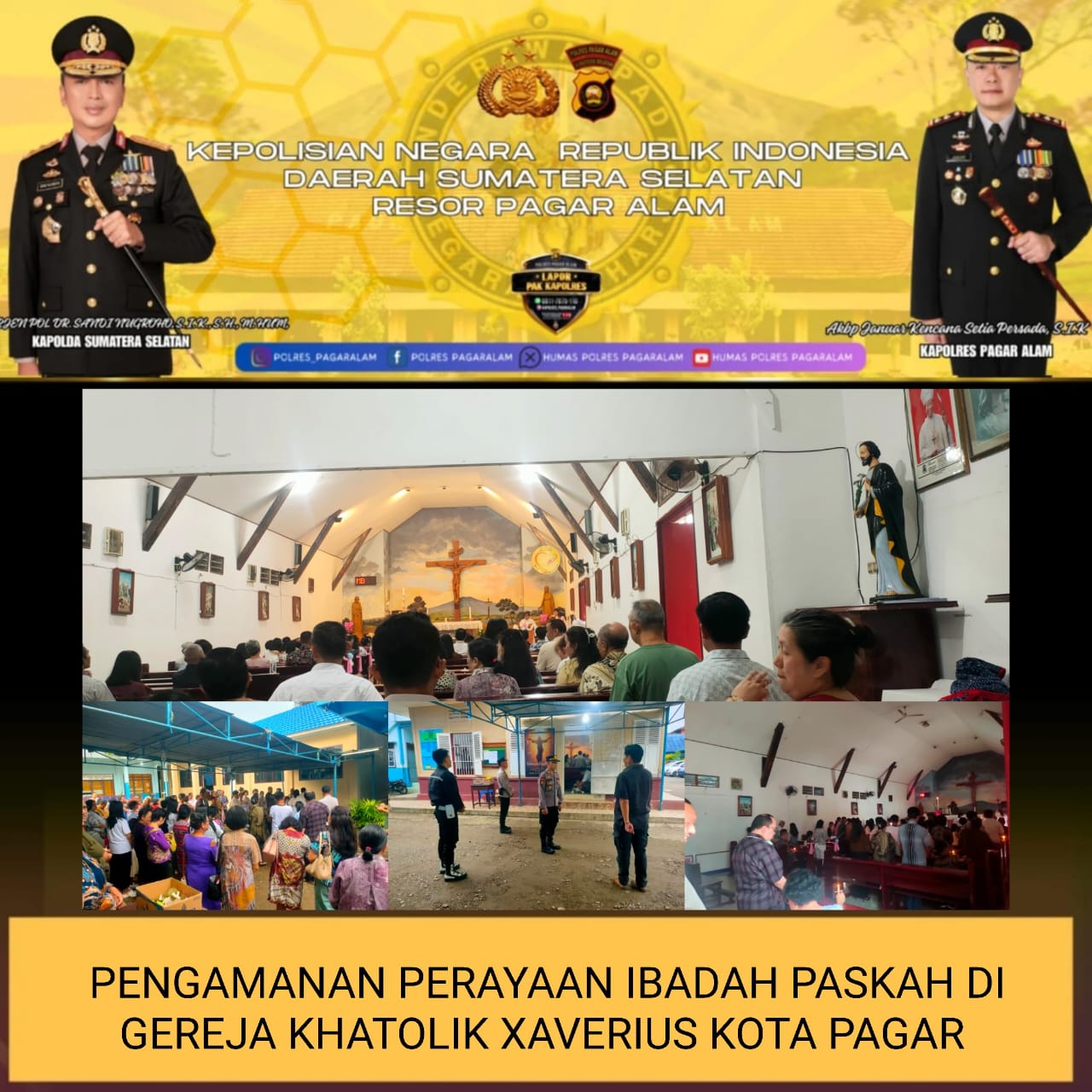 Pagar Alam Starindownews.com Polres Pagar Alam melalui Polsek Pagar Alam Utara Pada hari Sabtu 04/04/2026 sekira pukul 18.30 Wib melaksanakan Pengamanan kegiatan perayaan Ibadah Paskah Tahun 2026 di Gereja katholik Xaverius dikota Pagar Alam, giat pengamanan dipimpin langsung Kapolsek Pagar Alam Utara Akp Ramdani dan diikuti personel yang tersprin.