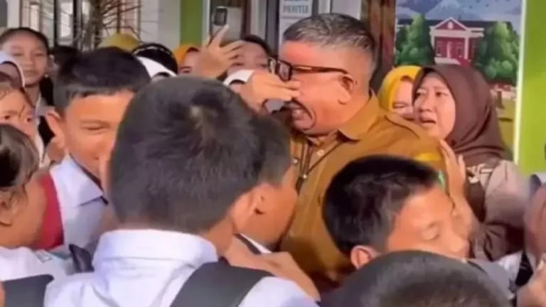 “Tangis haru murid SMP Negeri 1 setelah mengetahui kepala sekolahnya diganti,” tulis berbagai akun media sosial dilihat Selasa (16/9/2025).