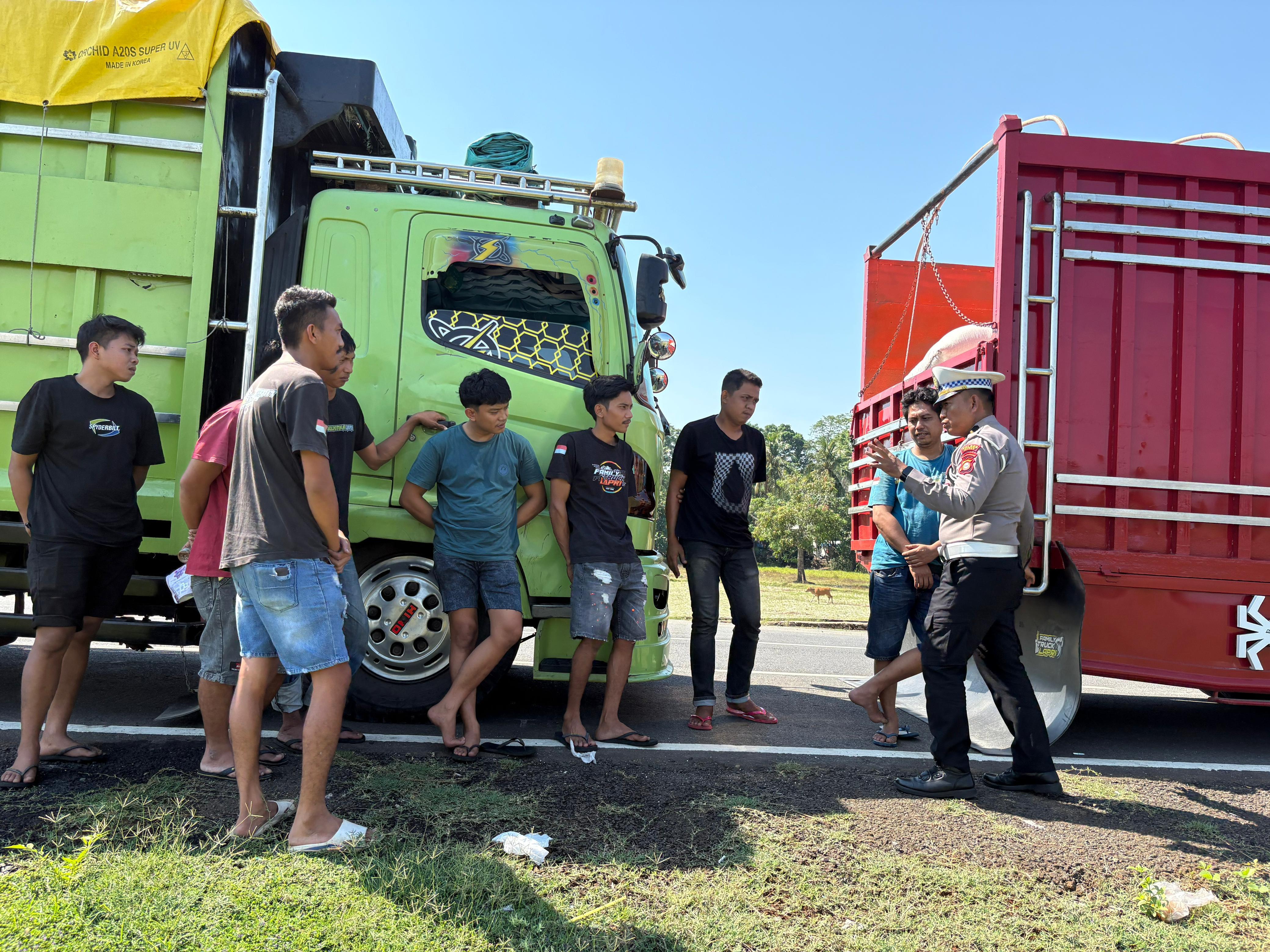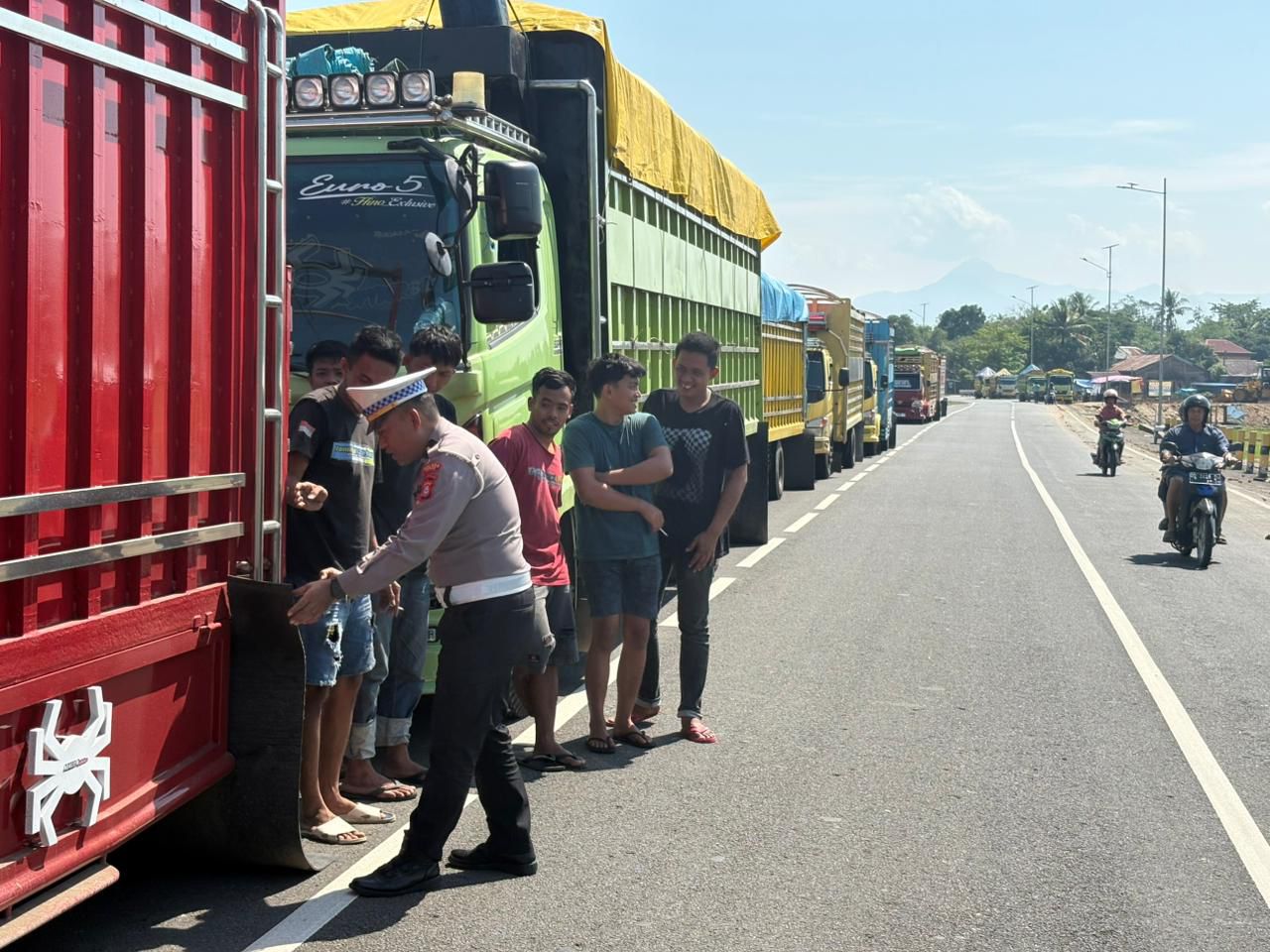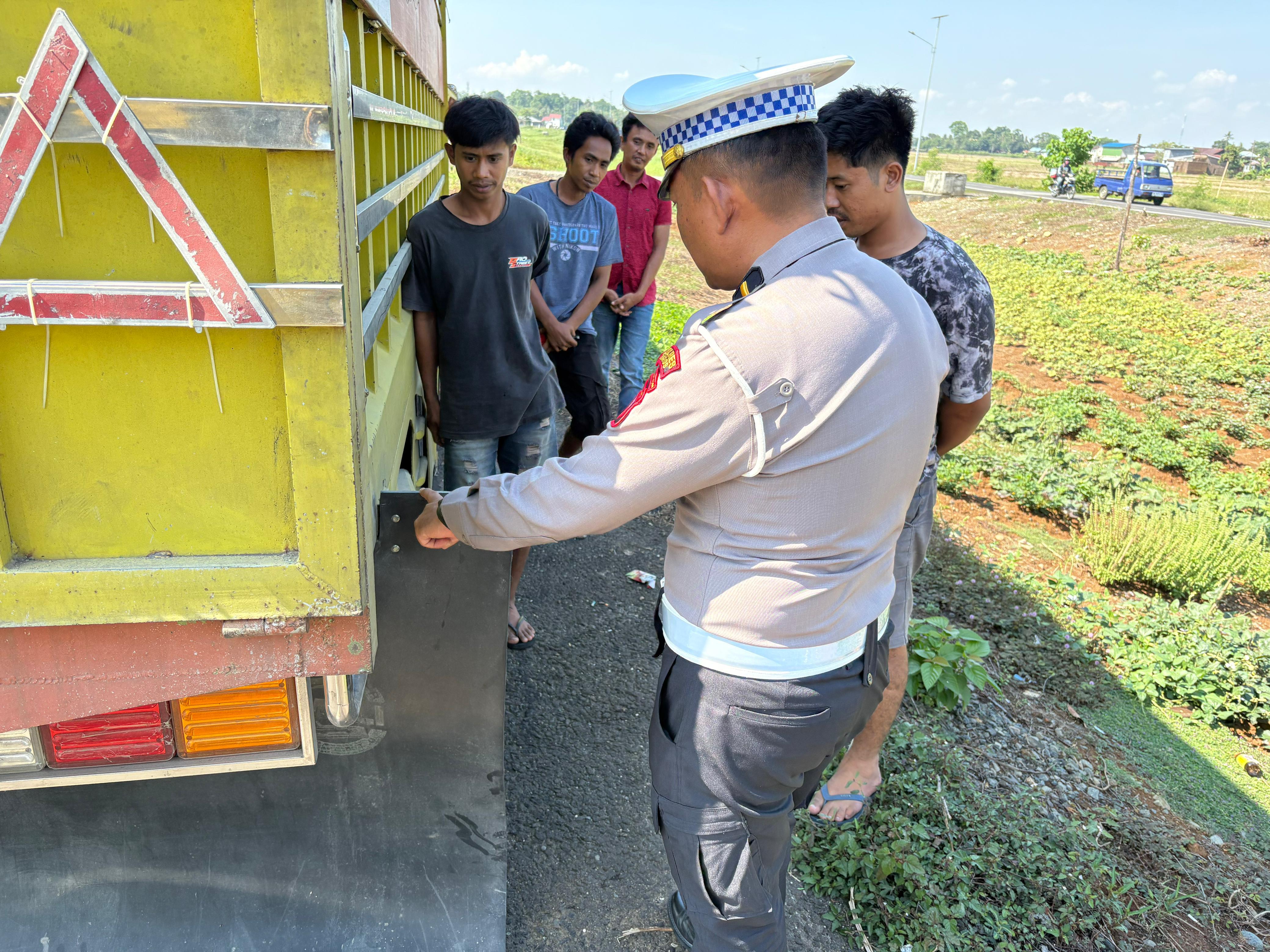 Selain itu, petugas juga mengingatkan agar pengemudi tidak memasang penahan lumpur yang melebihi ukuran bak kendaraan serta menghindari melintas di jalan poros pada jam padat kendaraan untuk mencegah kemacetan dan menjaga kelancaran arus lalu lintas.