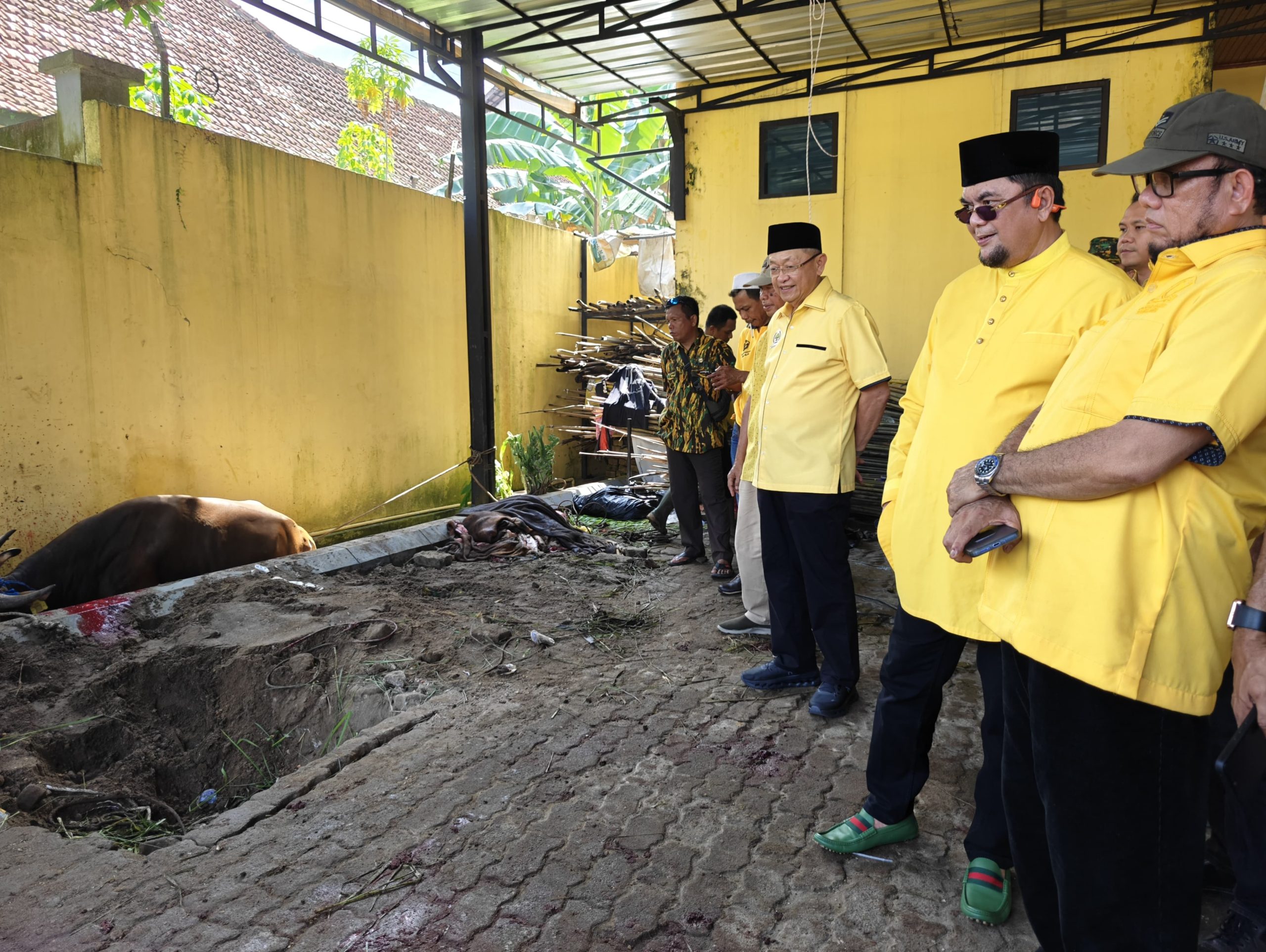 StarindoNews.Com | Jambi – Dalam rangka menyambut Hari Raya Idul Adha 1446 H, Ketua DPD Partai Golkar Kabupaten Muaro Jambi yang juga menjabat sebagai Wakil Ketua DPRD Provinsi Jambi, H. Ivan Wirata, menyalurkan satu ekor sapi sebagai hewan kurban di Kantor DPD Partai Golkar Provinsi Jambi Sabtu (7/6/2025).