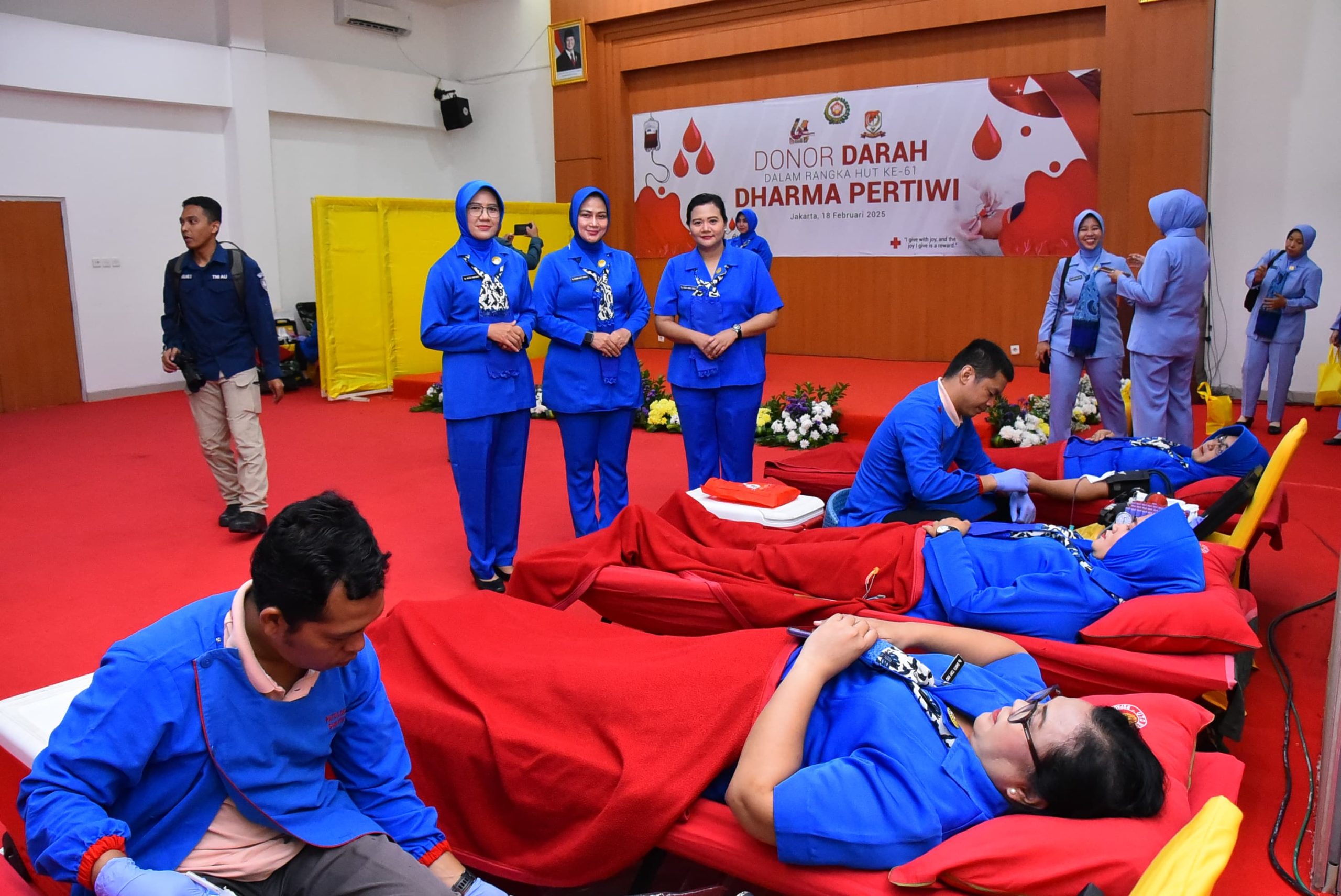 StarindoNews.com JAKARTA — Ketua Koordinator Cabang (Korcab) III Daerah Jalasenastri Armada (DJA) I Ny. Neneng Harry Indarto beserta Pengurus Korcab III DJAI mengikuti donor darah dalam rangka menyambut Hari Ulang Tahun (HUT) ke-61 Dhama Pertiwi Tahun 2025 bertempat di Aula Gedung Tjut Nyak Dien Mabes TNI, Cilangkap, Jakarta Timur, Selasa (18/02/2023).