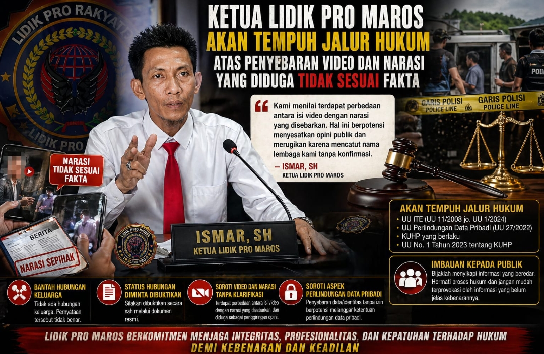 KETUA LIDIK PRO MAROS AKAN TEMPUH JALUR HUKUM ATAS PENYEBARAN VIDEO DAN NARASI YANG DIDUGA TIDAK SESUAI FAKTA