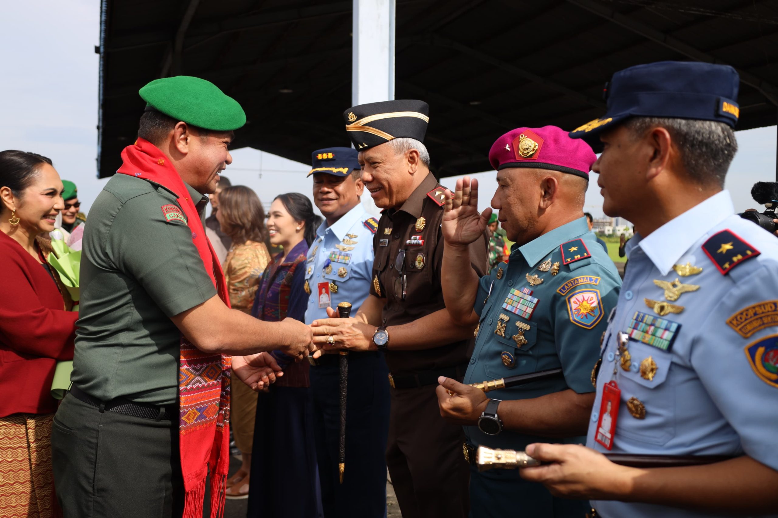 StarindoNews.com BELAWAN — Komandan Lantamal I Brigjen TNI (Mar) Jasiman Purba, S.E., CHRMP., menyambut kedatangan Kepala Staf Angkatan Darat (Kasad) Jenderal TNI Maruli Simanjuntak, M.Sc., beserta rombongan, di Lanud Suwondo, Medan, Selasa (07/01/2025).