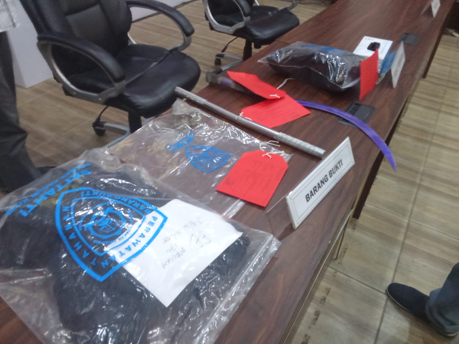 Deretan barang bukti yang digunakan oleh pelaku ditampilkan dalam konferensi pers