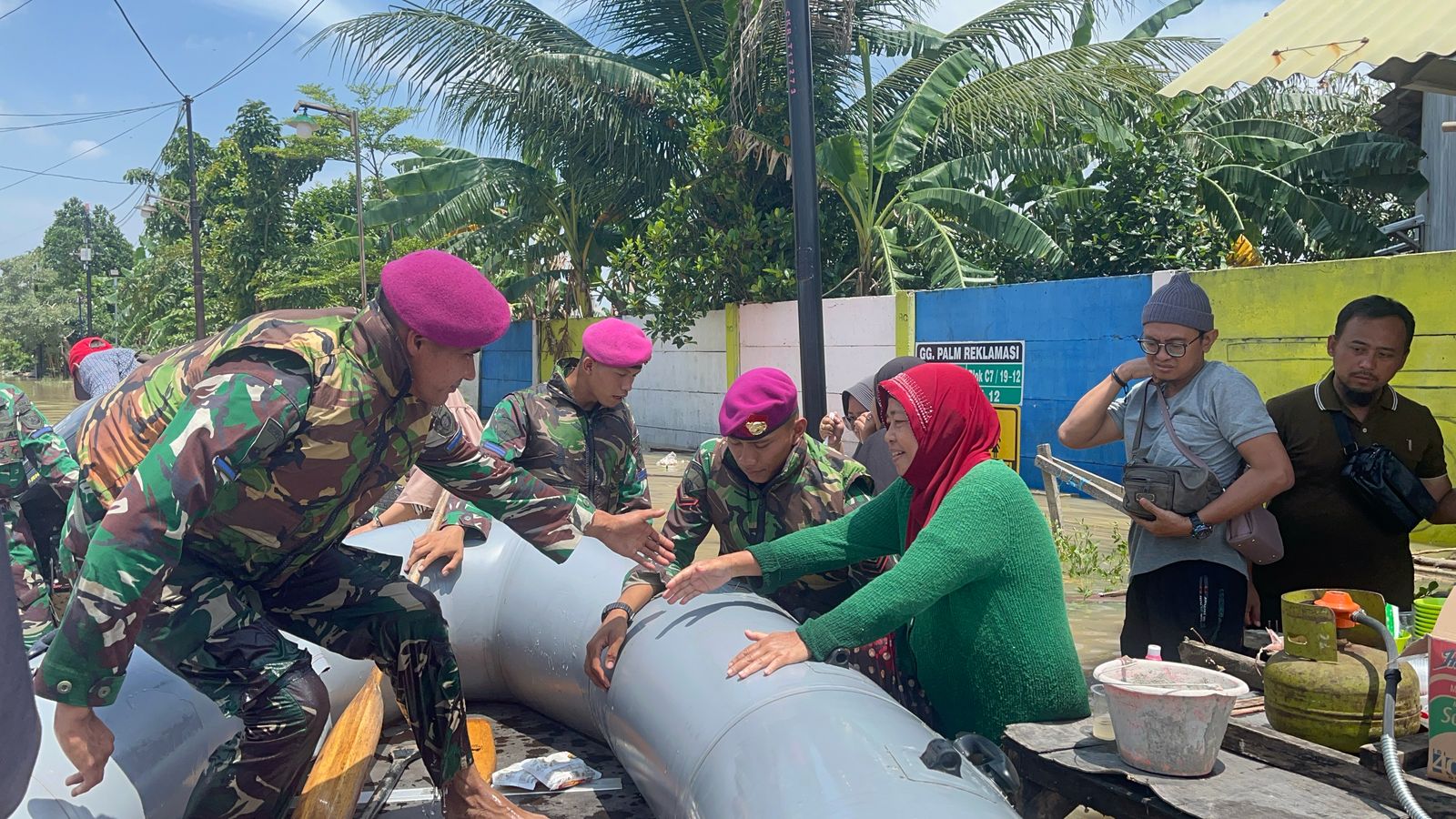StarindoNews.com KOTA BEKASI — Komandan Pangkalan Utama TNI Angkatan Laut (Danlantamal) III Jakarta Brigjen TNI (Mar) Harry Indarto, S.E., M.M. diwakili Komandan Batalyon Marinir Pertahanan Pangkalan (Danyonmarhanlan) III Jakarta Mayor Marinir Anthonius P. Etwin, M.Tr.Opsla. kembali menurunkan tim evakuasi untuk mencari korban banjir di Bekasi, bertempat di perumahan the Palm Green Residence, Bekasi, Rabu (05/03/2025).