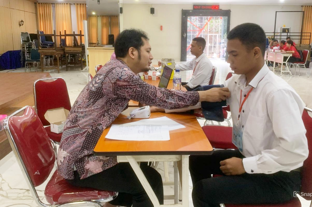 StarindoNews.com JAKARTA — Komandan Pangkalan Utama TNI Angkatan Laut (Danlantamal) III Jakarta Brigjen TNI (Mar) Harry Indarto, S.E., M.M. selaku Ketua Panitia Daerah (Panda) Lantamal III Jakarta diwakili Kepala Dinas Kesehatan (Kadiskes) Lantamal III Jakarta Letkol Laut (K) dr. Etra Ariando, Sp.PD. selaku Ketua Tim Pemeriksaan Kesehatan Panda Lantamal III Jakarta melaksanakan donor darah kepada 138 Calon Tamtama Prajurit Karier (Cata PK) TNI Angkatan Laut Gelombang I TA 2025, bertempat di gedung serbaguna (GSG) Mako Lantamal III Jakarta Jl. Gunung Sahari No. 2, Jakarta Utara, Selasa (18/02/2025).