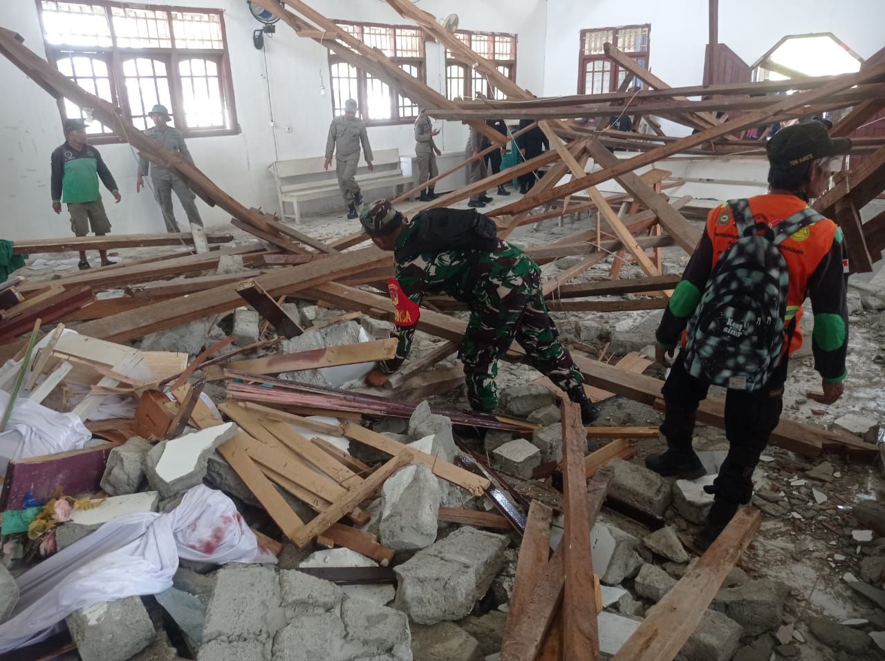 Kegiatan pembersihan dilakukan di area sekitar mushola yang sebelumnya dipenuhi rumput liar, daun kering, serta dinding berlumut. Tidak hanya itu, Satgas TMMD juga melakukan pengecatan bagian luar dan dalam mushola yang tampak kusam karena lama tidak dilakukan peremajaan.