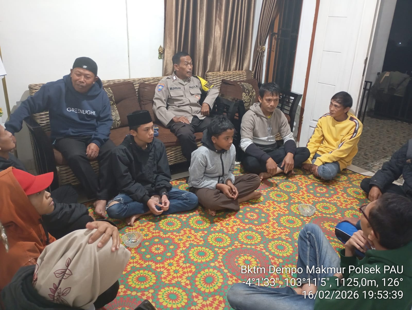 Seperti halnya yang di lakukan oleh Bhabinkamtibmas Dempo Makmur Brigka Muhidin Ba Polsek Pagar Alam Utara pada hari Senin Malam (16/02/2026) pukul 21.00 wib telah melakukan menyelesaikan masalah yang di alami warga binaannya dan memberikan himbauan kamtibmas untuk saling menjaga satu sama lainnya agar tercipta rasa aman dan damai di Kelurahan Dempo Makmur Kec Pagar Alam Utara Kota Pagar Alam.