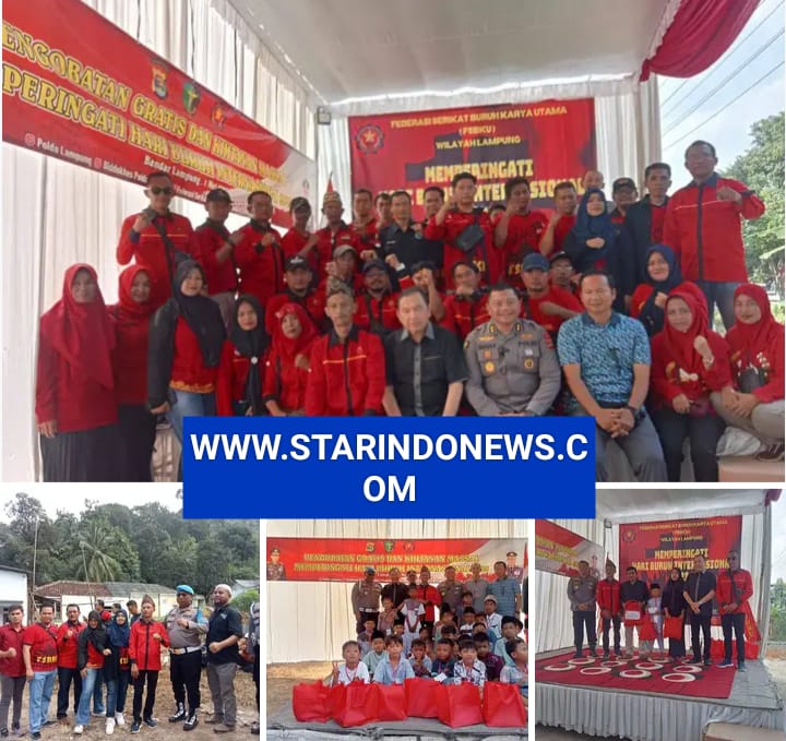 StarindoNews.com LAMPUNG SELATAN — Aksi sosial Guna Memperingati hari buruh Federasi Serikat Buruh Karya Utama ( FSBKU ) bekerja sama dengan Polda Lampung, Dinas kesehatan Propinsi Lampung, Beberapa Perusahaan dan Masyarakat sekitar, Melaksanakan khitanan masal gratis, periksa kesehatan gratis berlokasi di Sekretariat Serikat buruh, Kelurahan Srengsem, Kecamatan panjang, Bandar Lampung.