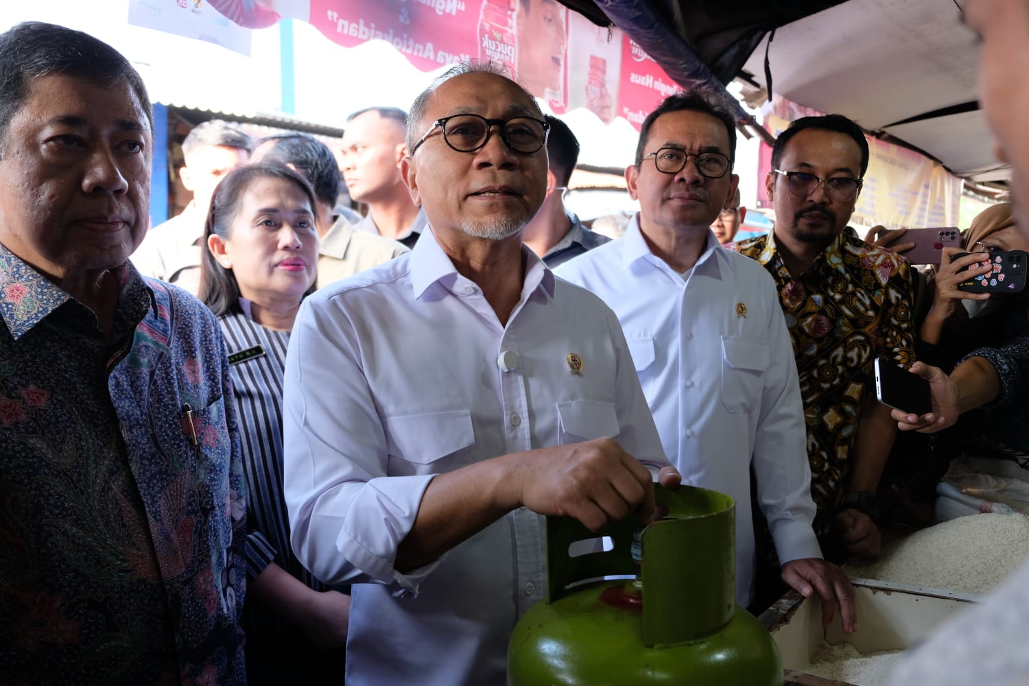 Usai melakukan pemantauan stok dan harga bapok, Mendag Busan dan Menko Zulkifli Hasan memantau ketersediaan stok elpiji 3 kg pada salah satu sub pangkalan yang masih berlokasi di sekitar Pasar Klender.
