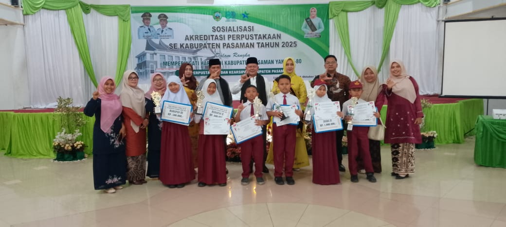 Dalam kegiatan tersebut juga diserahkan piagam, Thropy dan uang tunai terhadap beberapa siswa pemenang lomba bercerita tingkat sekolah dasar se Kabupaten Pasaman oleh Bupati Pasaman dan Bunda literasi Pasaman Ny. Lusi Welly Suhery.