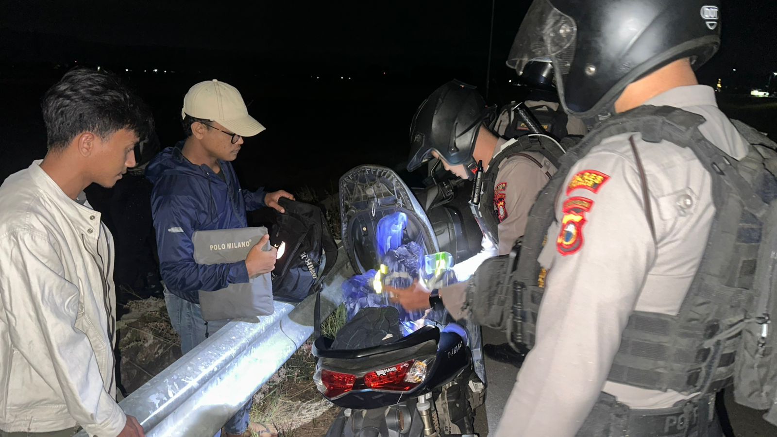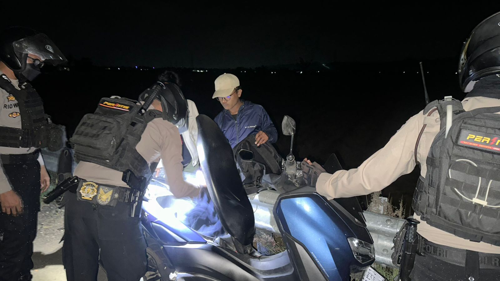 “Patroli dini hari ini kami fokuskan pada lokasi yang sering dijadikan tempat berkumpul para pemuda hingga larut malam. Selain memberi imbauan, kami juga melakukan pemeriksaan badan, kendaraan, dan barang bawaan. Dari pemeriksaan tersebut, ditemukan sebilah badik di tas salah satu pemuda,” ungkapnya.