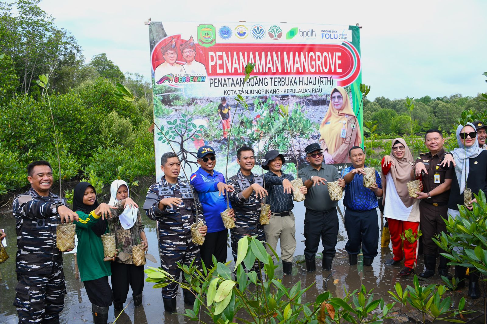 StarindoNews.com TANJUNGPINANG — Komandan Lanal Bintan Kolonel Laut (P) DR. Eko Agus Susanto, S.E., M.M., bersama Prajurit Lanal Bintan ikuti acara Penataan Ruang Terbuka Hijau (RTH) dengan melaksanakan Penanaman 5.000 Pohon Mangrove, bertempat di Laboratorium Mangrove Alami SMP Negeri 10, Tanjung Unggat, Kota Tanjungpinang, Sabtu (24/05/2025).