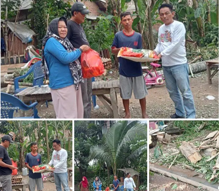 www.starindonews.com.Lampung Selatan,- Camat Katibung Abdul Rahman ,s.Kom.M,M., Didampingi Kepala dusun batu payung, Beserta Sopyan anggota intel Satpol-PP Kecamatan sambangi warga Tarahan yang mengalami Musibah Pada Rabu Pagi, Kediaman Muslim tertimpa pohon besar jenis Pete setelah di hempaskan oleh angin.